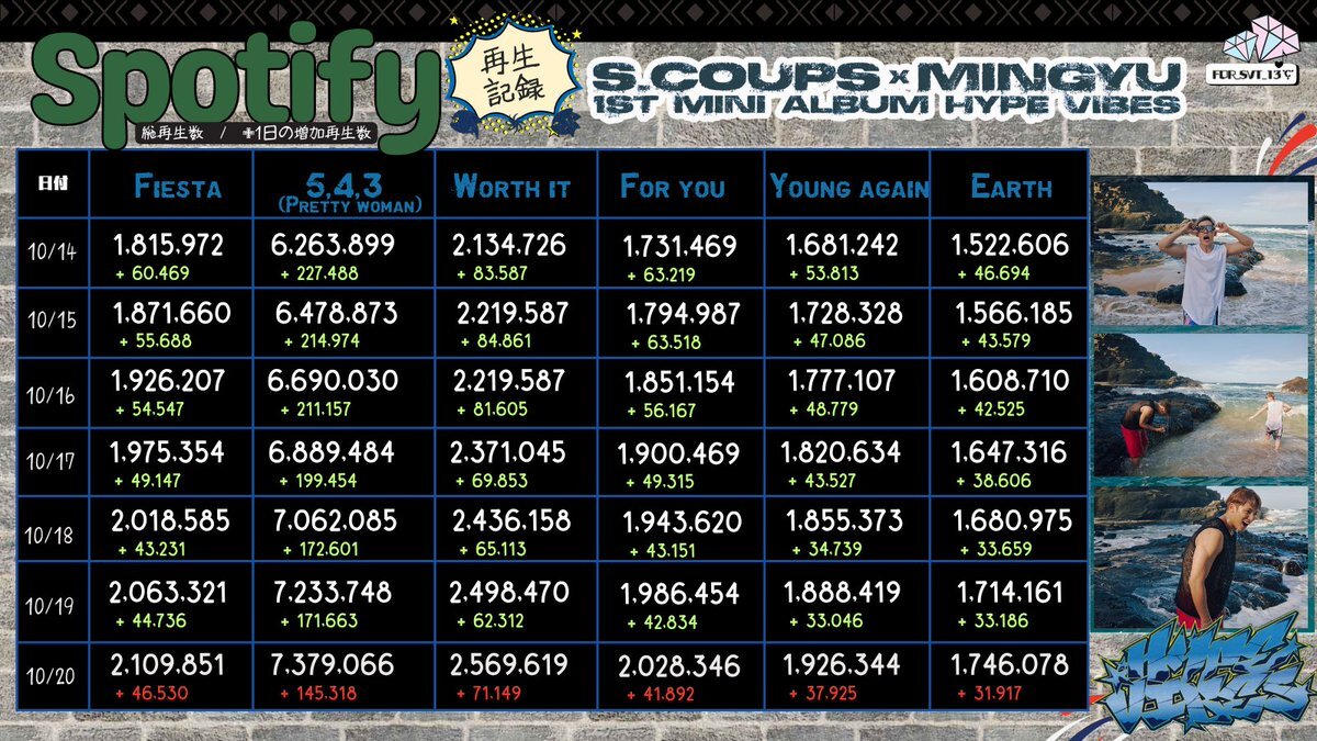 🟢Spotify再生回数記録🟢10/20 S.COUPS×MINGYU 5,4,3(Pretty woman)7,379,066(+145,318) #CxM HYPE_VIBES ▶️open.spotify.com/intl-ja/album/… #에스쿱스X민규 #SEVENTEEN #세븐틴 @pledis_17 @pledis_17jp pic.x.com/EFX4xh6IUi
