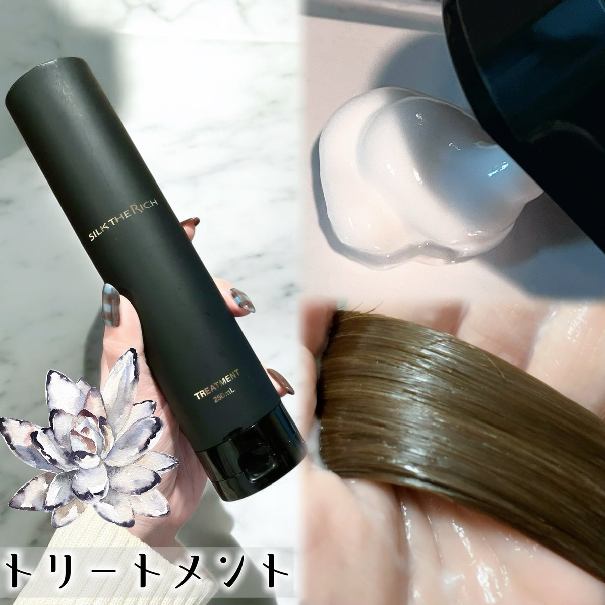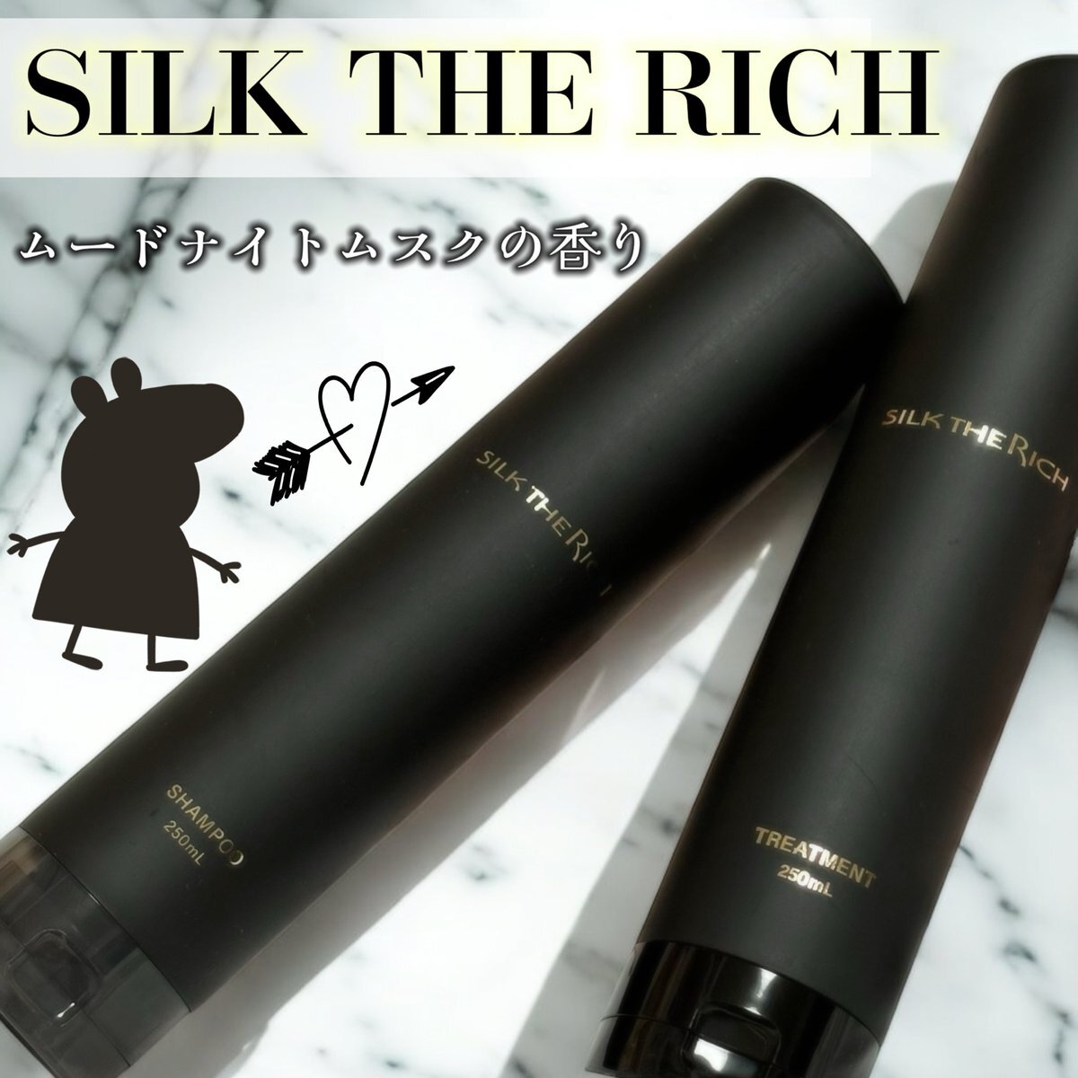 どちらもムードナイトムスクの香りで 落ち着いた香りで癒される◡̈⋆ . 気になる方は是非チェックしてみてください𓈒𓂂𓏸 . #シルクザリッチ #SILKTHERICH #SILK #天然シルクのフレグランスヘアケア #ヘアケア #パワーアップした黒金ボトル