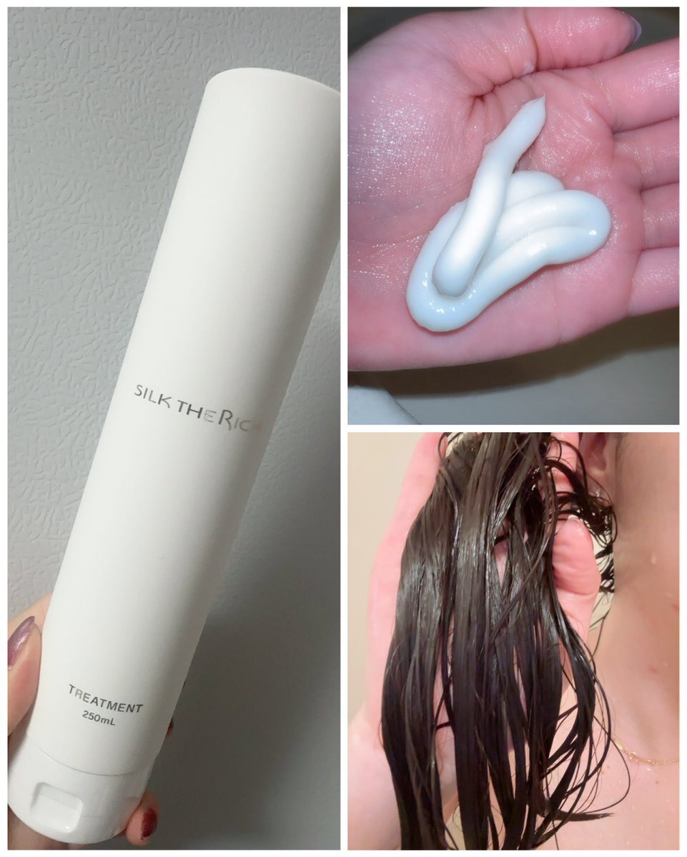 濃密に髪に絡んでくれるようなもったりさがいいね👍✨️ しっとりとする使用感で、パサつきが気になる私の髪には嬉しい仕上がりに🥰 フリージアの香りがすごくいい♡♡ #シルクザリッチ #SILKTHERICH #SILK #天然シルクのフレグランスヘアケア #ヘアケア #新商品 pic.x.com/Ygf4XsYSUv