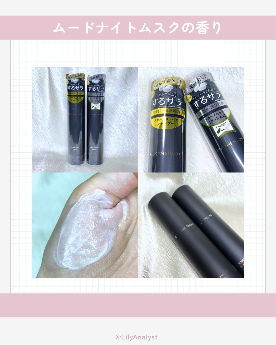 シルクザリッチのスカルプ&リペア シルク成分に加えてスカルプ成分も配合されていて、頭皮ケアまで◎ ムードナイトムスクの香りがすごく良く 泡立ちも濃密でスッキリしっとり #シルクザリッチ #SILKTHERICH #SILK #天然シルクのフレグランスヘアケア #ヘアケア #パワーアップした黒金ボトル pic.x.com/UPsfyahGqq