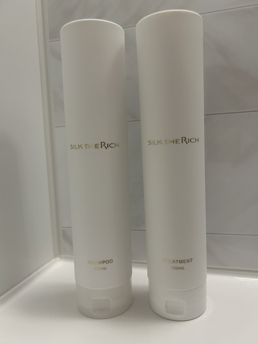 スタイリッシュな容器で風呂場にも馴染む。 ゴールデンペアー・フリージアの香りが良い。夏の傷んだ髪を補修してくれるそう。 使用感は◎ しっかりと洗えてる感じがあります。 指通りもいい方だと思います。 #シルクザリッチ #SILKTHERICH #SILK #天然シルクのフレグランスヘアケア #ヘアケア #新商品 pic.x.com/bMCAWuJuYm