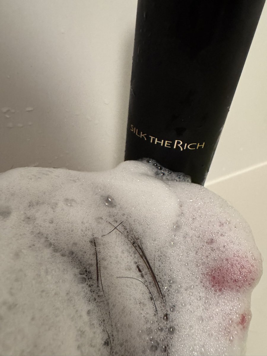 ⭐️濃密なシルキーホイップ泡 まず、シャンプーを出してみてびっくり。ねっとりしたテクスチャーで初めての感覚でした。泡はとっても濃密なホイップ泡になりました。 #シルクザリッチ #SILKTHERICH #SILK #天然シルクのフレグランスヘアケア #ヘアケア #パワーアップした黒金ボトル pic.x.com/e8FdjOAYL4