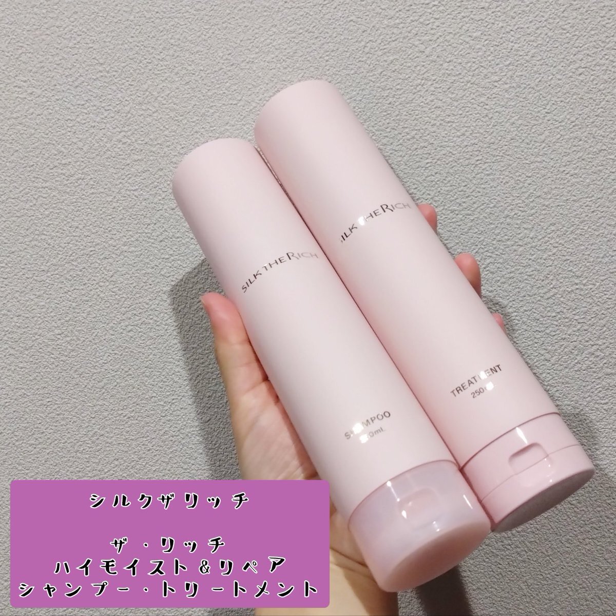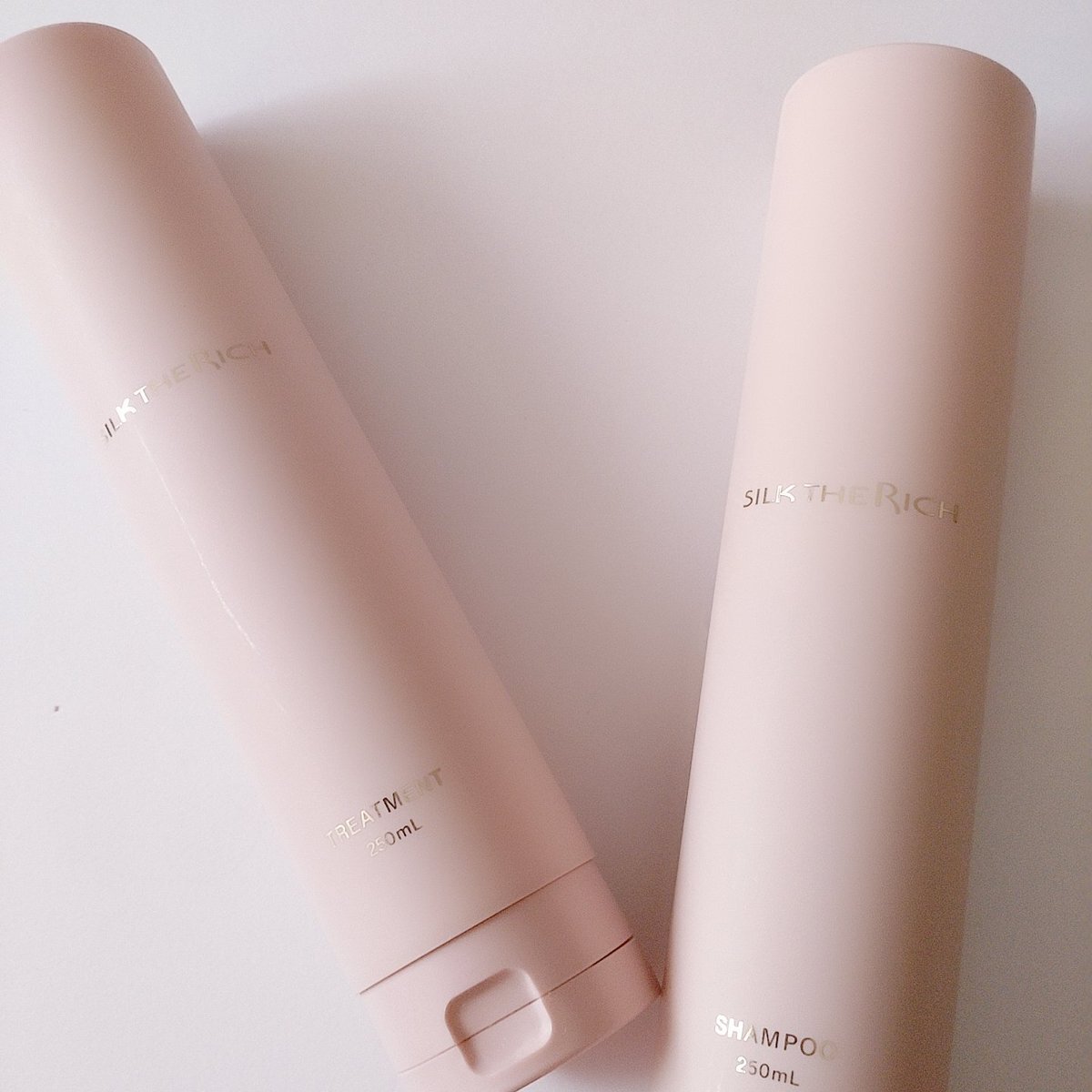 #シルクザリッチ #SILKTHERICH #SILK #天然シルクのフレグランスヘアケア #ヘアケア #新商品 シルクザリッチ ザ・リッチ ハイモイスト&リペア シャンプー・トリートメント (アンヴェールロゼブーケ) 薄いピンク色の容器が可愛い新商品。香りは、使用後にヘアドライしても続くいい香りです。