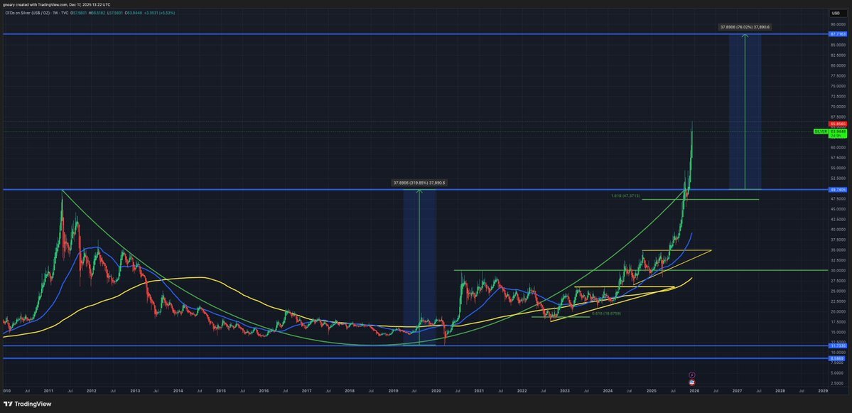 何回も言いますが、シルバーは買っておきましょう。もう一度言います。シルバーは買っておきましょう。もう一度言います。シルバーは買っておきましょう。45年で形成したこのチャートの美しさ。あなたの資産が9倍以上増えるかもしれません。そしてその期待値は非常に高い。Buy🥈🚀 #silver #シルバー pic.x.com/Jr3jK8wD99