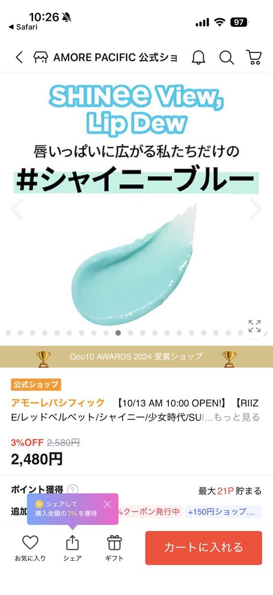 そんなに人気なんだね😖あやうく買えないかと思った💦 みなさん、ここならまだ在庫ありますよ! #shinee #SHINee #KEY #2025keyland #key #minho #onew #taemin #smtown #ripbalm #amorepacific #sj #superjunior pic.x.com/cAOR6yEHM5