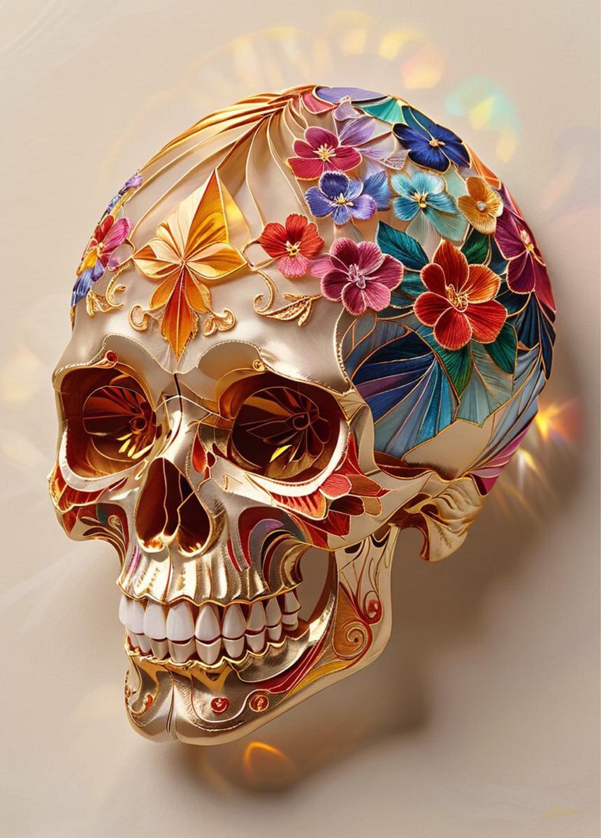 闇に咲く華。 黄金の骸骨に、祈りのように散りばめられた花々。 美しさと儚さが同時に宿る“開運アート”複製画です。 あなたの部屋に、静かな光をひとつ。 #TheAura #SkullArt #DarkArt #ArtPrint #複製画 #開運アート #FloralArt #GoldenArt #JapaneseArt #インテリア pic.x.com/4IjLXRSiC3