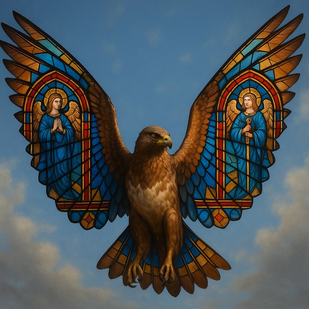 #仮想生物図鑑 Wings that bestow divine light upon the sanctuary of prayer (祈りの空間に神聖な光をもたらすための翼) #生成AIで巣 #stainedglass #hybridcreature #creaturedesign #fantasyart #aiイラスト #GenerativeArt pic.x.com/FkfN1iIB1E