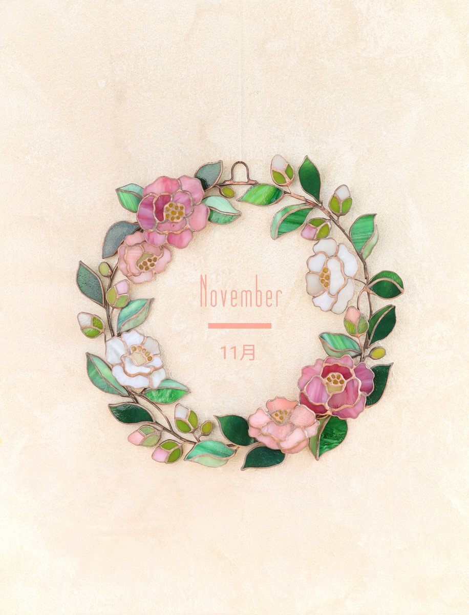 毎月1日にお送りする季節の植物のリース《 12ヶ月のリース 》🌿 11月 は 「 サザンカ 」です。 本日19時にCreemaに出品致します。 よろしくお願い致します。 #ステンドグラス #stainedglass pic.x.com/17WcZrWxKB