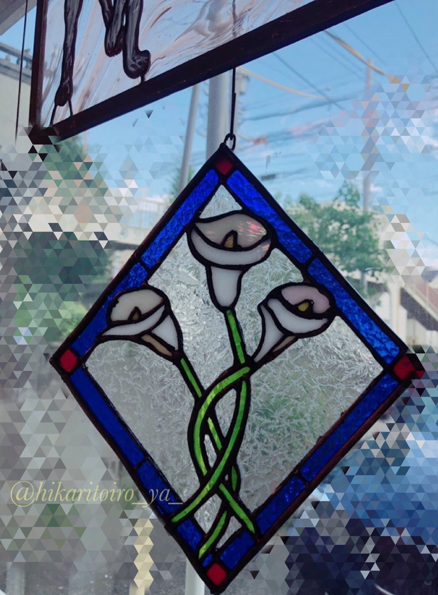 #好きな花を好きなだけTLに咲かせよう🤍calla lily🤍 #stainedglass 七宝、サンドブラスト、焼き付け、ケイム組み #365DIYtheme pic.x.com/51rTI83sJy x.com/hikaritoiro_ya…