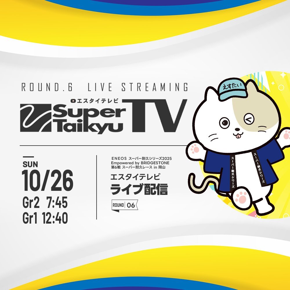 \S耐TV★秋風に乗って、全開アタック!/ ・ ENEOS スーパー耐久シリーズ2025 Empowered by BRIDGESTONE 第6戦 スーパー耐久レース in 岡山 ・ 朝の冷たい空気とともに、エンジンの鼓動が鳴り響く。 10/25(土)予選、10/26(日)決勝 秋の決戦! 《配信予定 》 Gr:2決勝:10月26日(日) 7時45分
