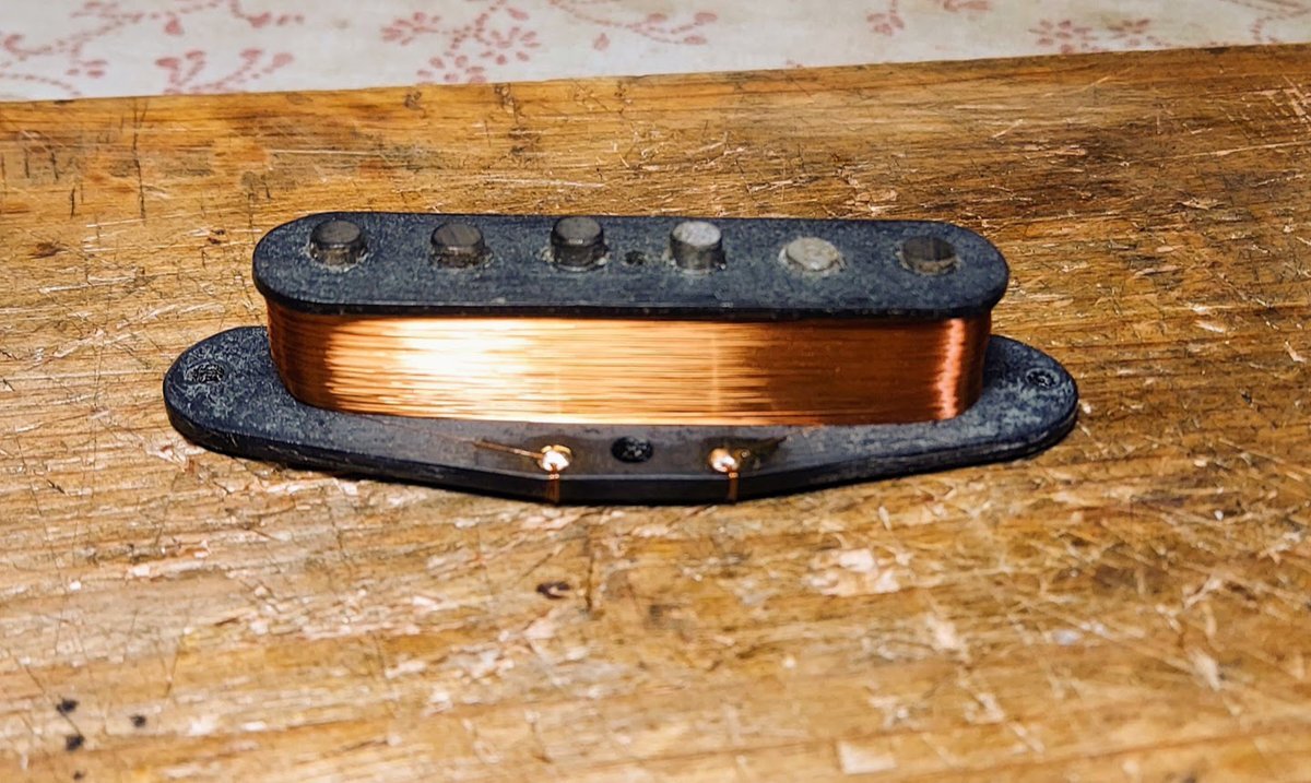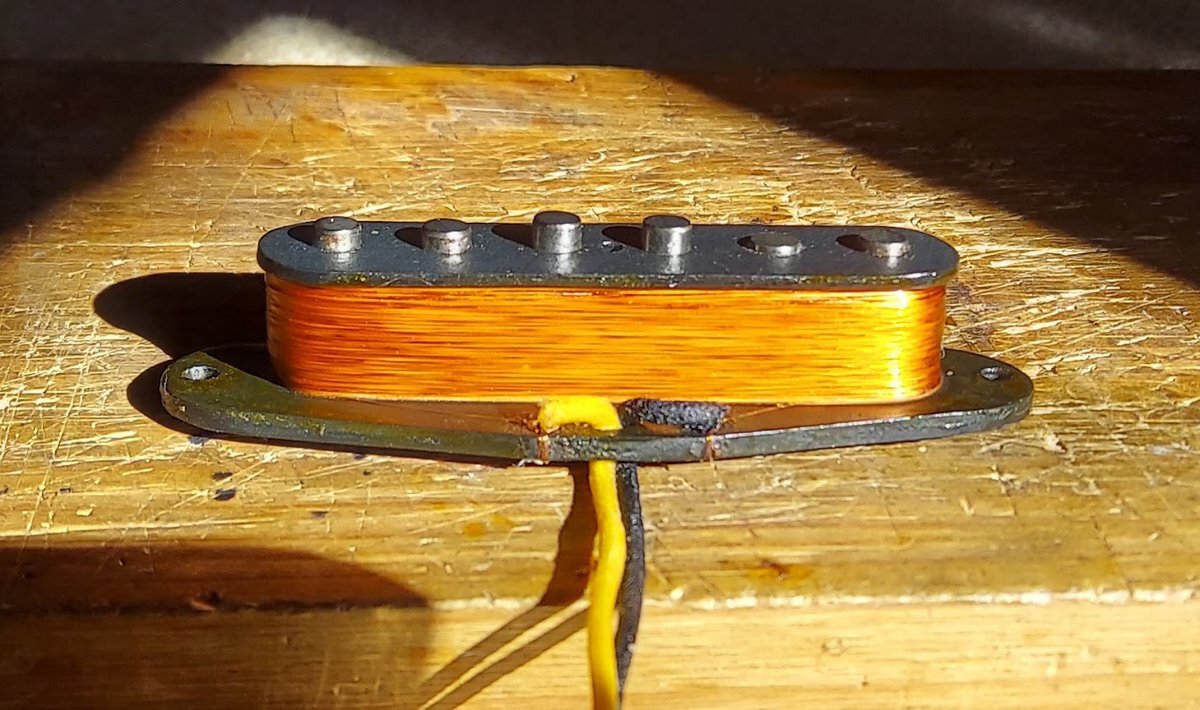 69年STRAT Neckポジション巻き直し。 42 PEで7,600ターン (5.4kΩ/12°C)。 Mid→5.2k, Bridge→5.5kだったので、良い感じ。 (ラッカー処理後とワックス処理後の写真。) #strat #strattocaster #fender #fenderstrat #fenderstratocaster #ストラト #ストラトキャスター pic.x.com/vjzsiqvuHV
