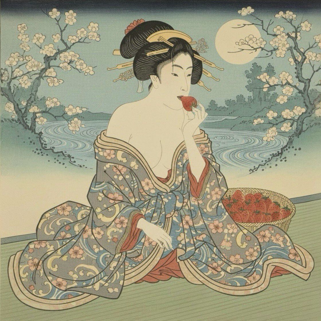 『艶胸瑞苺雅想図』 “Enchanting Beauty and the Grace of the Luscious Strawberry#Japan #Edo #Art #Ukiyoe #Grace #Strawberry #江戸 #浮世絵 # # pic.x.com/G4Dkd0ewUJ