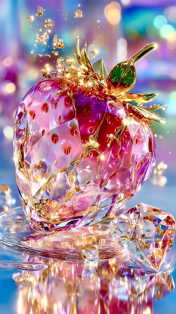 宝石みたいにきらめく“クリスタルいちご”🍓💎 光が溶けるみたいで、見てるだけで幸せな気分になれますね🍀*゜ A jewel-like crystal strawberry shining in the light. #aiart #fantasy #strawberry #gem pic.x.com/JRbVp7QPKV