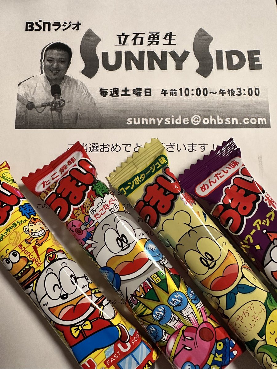 ラジオ📻で要らないって失礼なコト言っちゃった うまい棒 送ってくれたわ💦 BSNさん 立石さんありがとう🎁 配達のとき無理矢理 郵便受けに入れたのか全部潰れてる🤣 #サニーサイド #SunnySide #立石勇生 pic.x.com/YviNO2Kd37