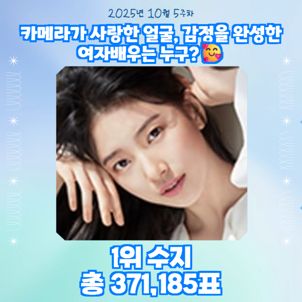 📢 2025年10月第5週 — Startrend 女優・映画・ドラマ(女性)👑 *┈┈┈┈*┈┈┈┈*┈┈┈┈*┈┈┈┈* 🥇 #Suzy(371,185票) 🔥 永遠のアイコン #Suzy が再び1位に輝き、優雅さと感情豊かな演技でファンを魅了!🔥 *┈┈┈┈*┈┈┈┈*┈┈┈┈*┈┈┈┈* 🥈 #KimHyeyoon — 308,913票 🥉 pic.x.com/p6uE6w0iDy