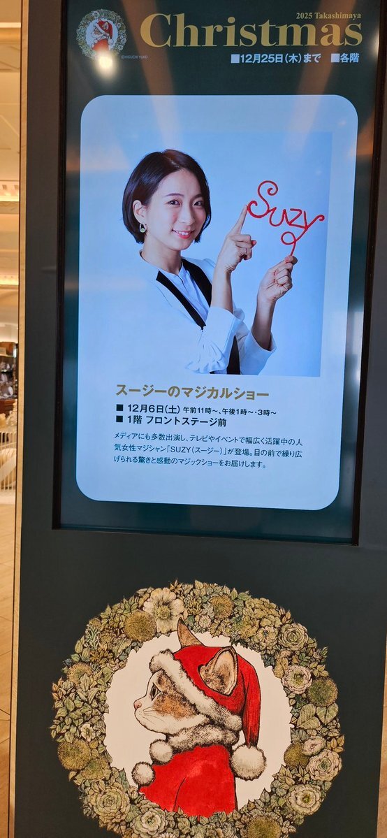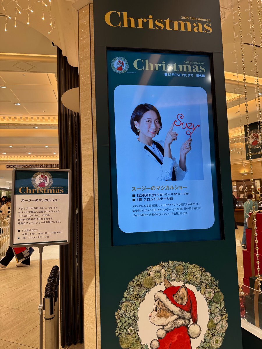 今日は久しぶりに マジシャンスージーちゃんを観になんば高島屋に~ #SUZY さ、さ、3回公演?(笑) 1回目終わりました~🥰 綺麗なクリスマスツリーの横で 綺麗なマジシャン🥰 艶やかでした、後2回(笑) pic.x.com/99ImOnC5i0