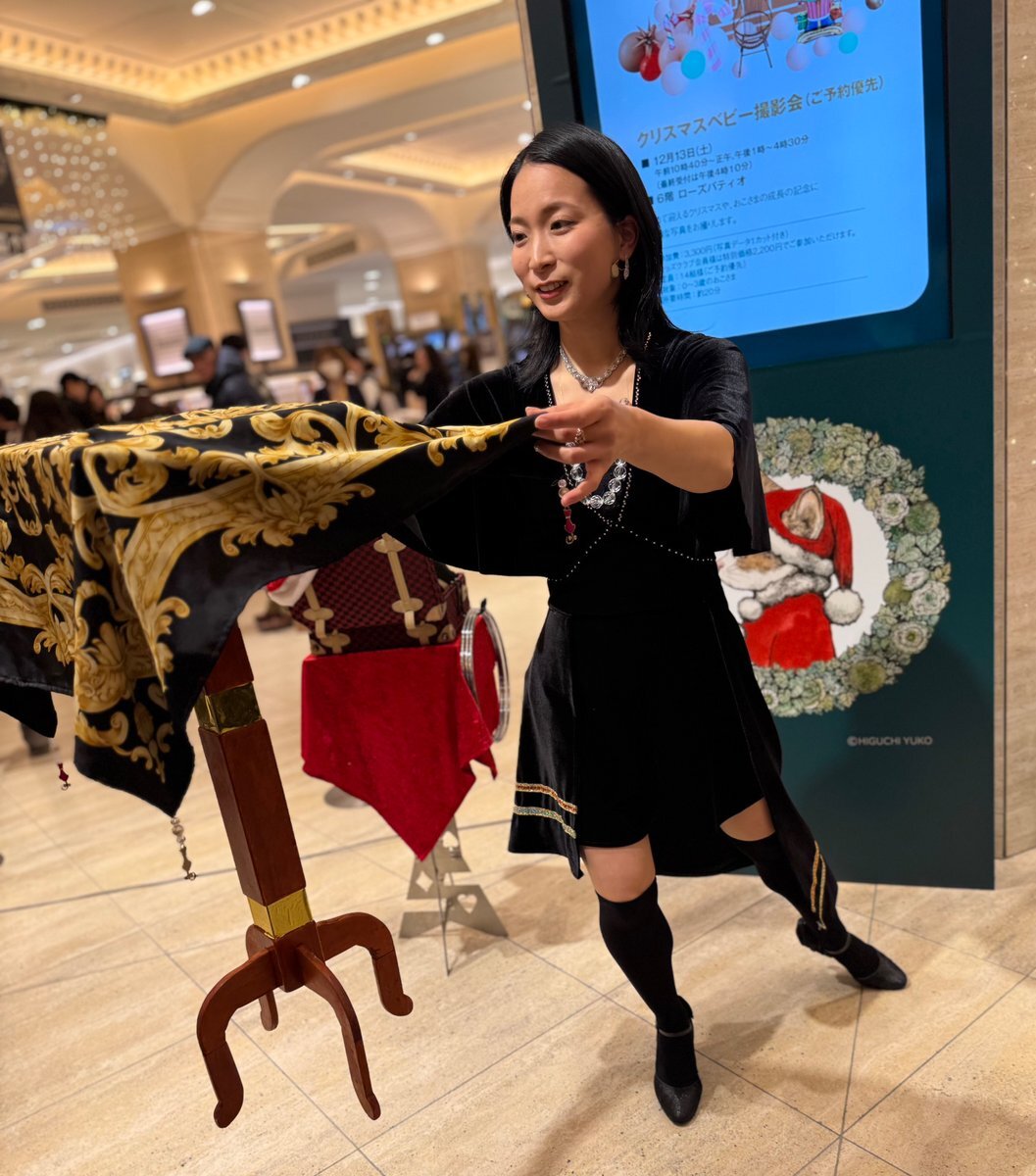 大阪高島屋で行われていた #SUZY スージーのマジカルショーを見ました🪄 SUZYさんの得意なリングマジックやたくさんのマジックを間近で見れて良かったです🎄 写真は"浮遊するテーブル" 不思議です👀 pic.x.com/YrSepq0f7L