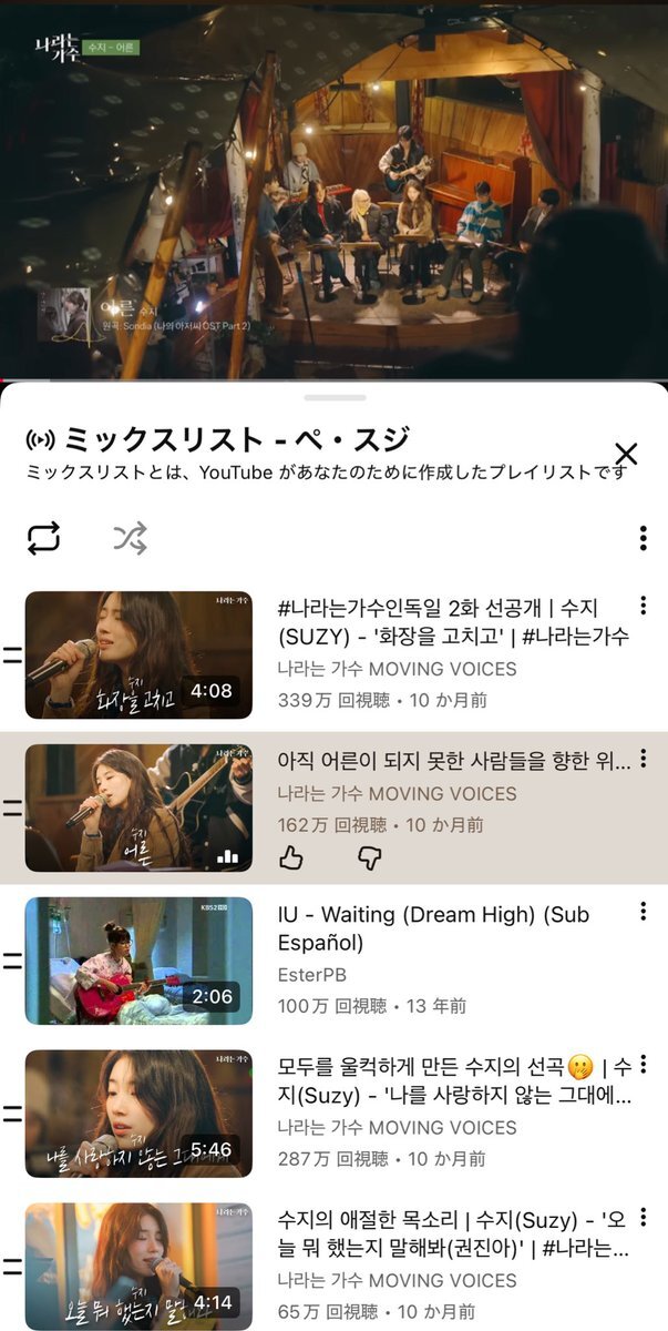 このplaylist聴いてたら私にとっての KPOPの母はsuzyだなと気付いてボロ泣き 夜のヒーリングに順番に過去の曲から遡って聴いてて、いまこれ流してる🥲♡ 本当おすすめ オレンジライト焚火モード、イヤホン🎧推奨 #suzy pic.x.com/02nN6KsIpc