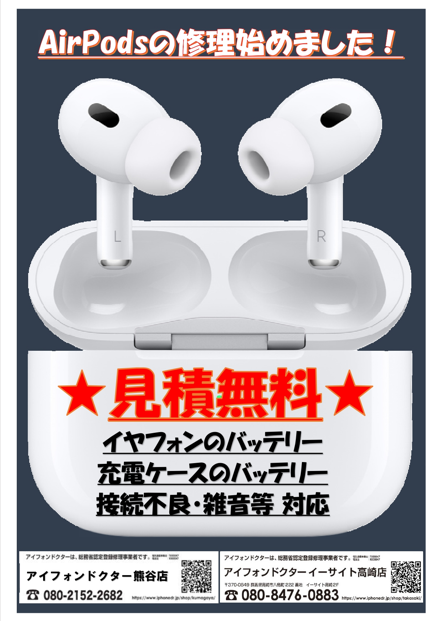 【最新情報!】 なんとAirPodsも修理しています! 在庫があれば即日! 無ければ注文して、修理当日お渡し! 相談待ってます! #高崎駅 #高崎 #高崎市 #TAKASAKI #TAKASAKIcity #AirPods修理 #AirPods故障 #AirPods #AirPodsバッテリー交換 #イヤホンバッテリー交換 #スマホ #充電ケースバッテリー交換 pic.x.com/iyHYDzCguq