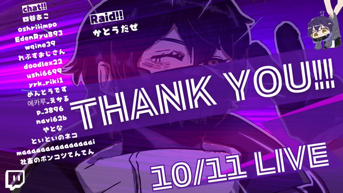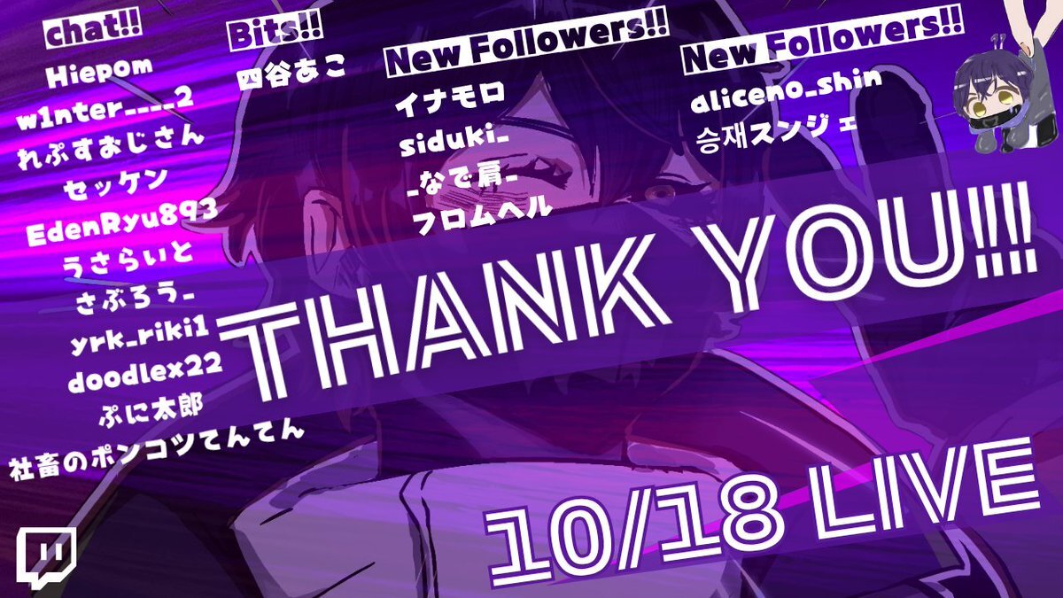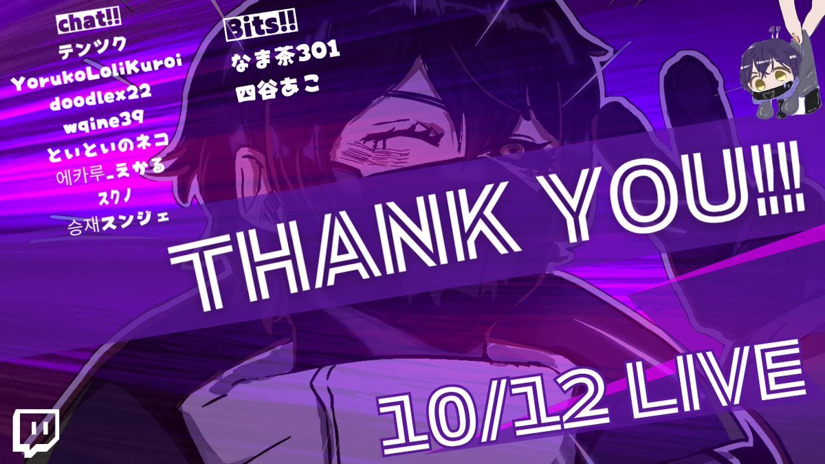 10月上旬から中旬にかけてご視聴・ご支援いただきありがとうございます💜 参加型のルール改訂など激動の10月前半となりましたが、自分にできる範囲で精いっぱい頑張りたいと思います♪  そろそろ魔の年末が...来年を無事に迎えられるのか... #twitch配信者 #ThankYou #Twitch配信者さんと繋がりたい pic.x.com/LGpbEHwakZ