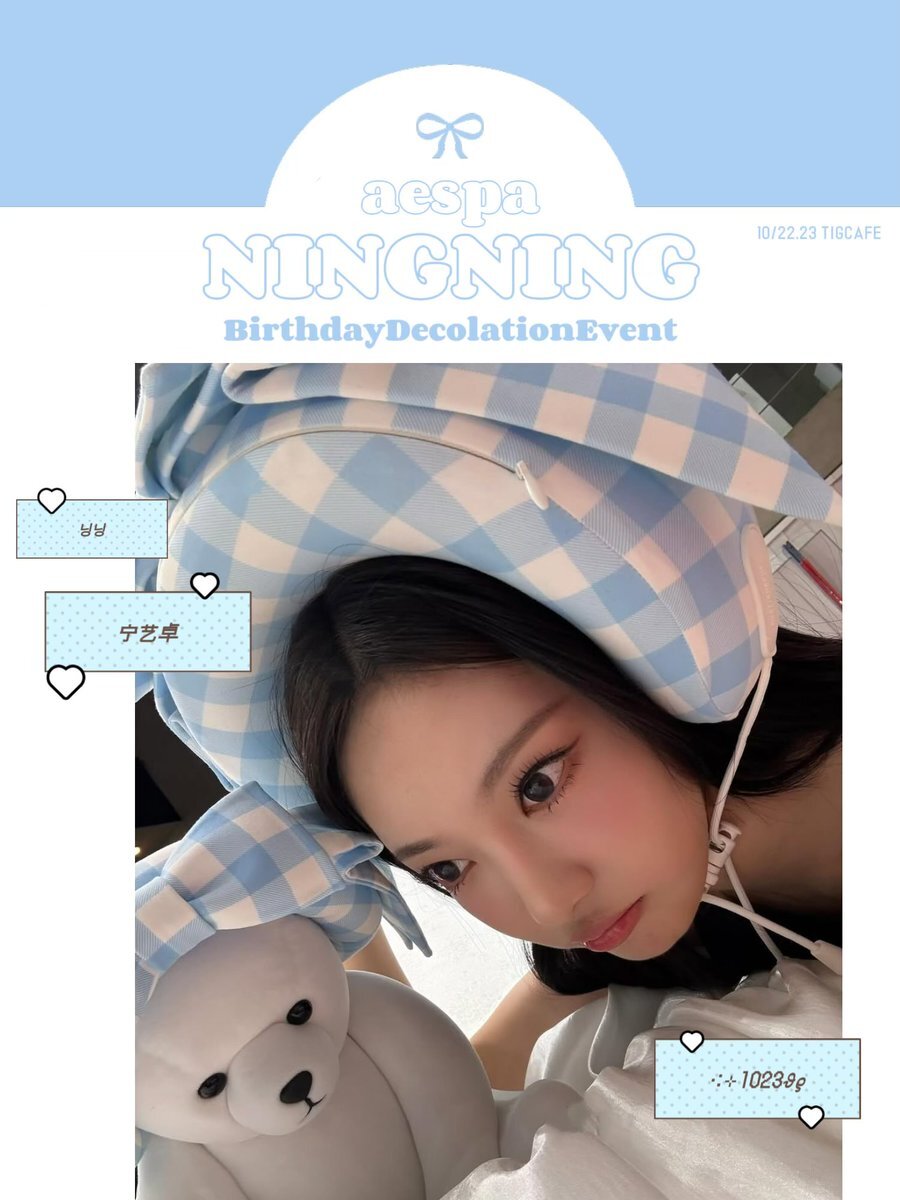 [ #aespa #ニンニン ちゃん🦋] 📢10/23のセンイルを記念して装飾イベント開催🎀 -🗓️10.22(水)-10.23(木) - ⏰平日 11:00-18:00 / 土日祝10:00-18:00 -カフェ横展示スペース装飾 MYの皆様εïзTIGCAFEでいっしょにお祝いしましょう^ ̳>𖥦< ̳^⭐️ #tigcafe #tigカフェ #에스파 #宁艺卓 #NINGNING