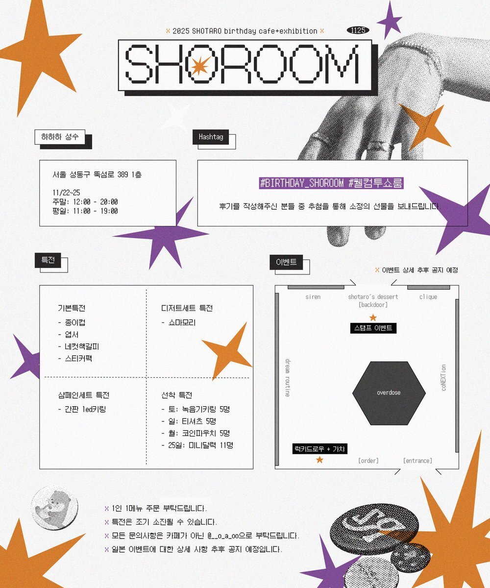 [𝗜𝗻𝘃𝗶𝘁𝗮𝘁𝗶𝗼𝗻] 𝘄𝗲𝗹𝗰𝗼𝗺𝗲 𝘁𝗼 ִ °. •̩̩͙ ִ𝑺𝒉𝒐𝒓𝒐𝒐𝒎ִ °. •̩̩͙ ִ 𝟤𝟢𝟤𝟧 𝖻𝗂𝗋𝗍𝗁𝖽𝖺𝗒 𝖾𝗏𝖾𝗇𝗍 𝖿𝗈𝗋 #SHOTARO 서울 𝟣𝟣/𝟤𝟤-𝟤𝟧 東京 𝟣𝟣/𝟤𝟦-𝟤𝟧 大阪 𝟣𝟣/𝟤𝟤-𝟤𝟧 #RT 추첨 굿즈를 드립니다!⸝⁺ #BIRTHDAY_SHOROOM #웰컴투쇼룸 #쇼타로 #ショウタロウ