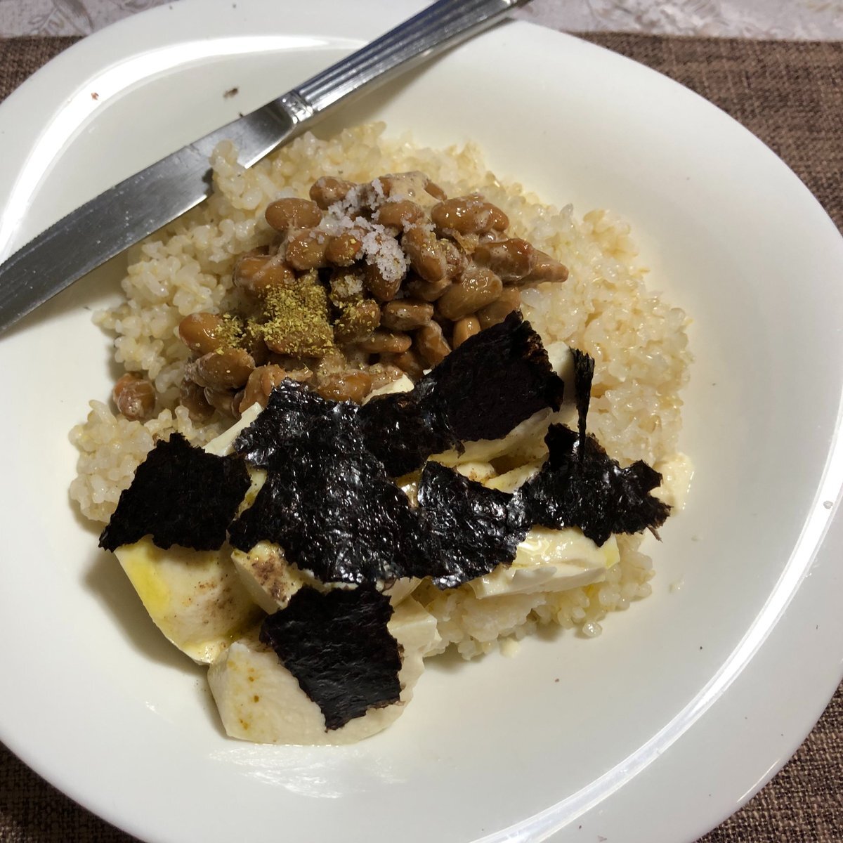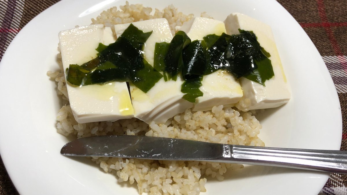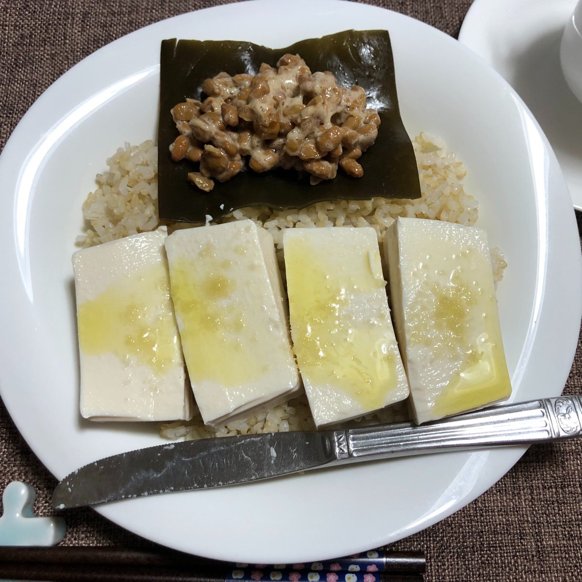 豆腐丼。 絹豆腐150g+オリーブオイル+レモスコ+藻塩。 茶漬け風。 カレー粉、藻塩、オリーブオイル。 毎日同じモノばかり食べている。 それはそれでラク。 #ミートフリーマンデー #MeatFreeMonday #ヴィーガン #vegan #tofu #konbu #プラントベース #動物性不使用 #広島平和菜食主義 #玄米菜食 pic.x.com/cmjazQ9aCD