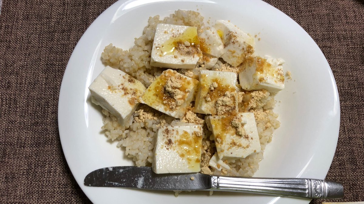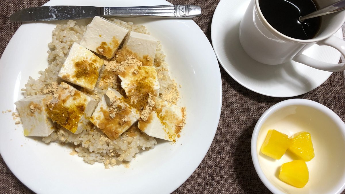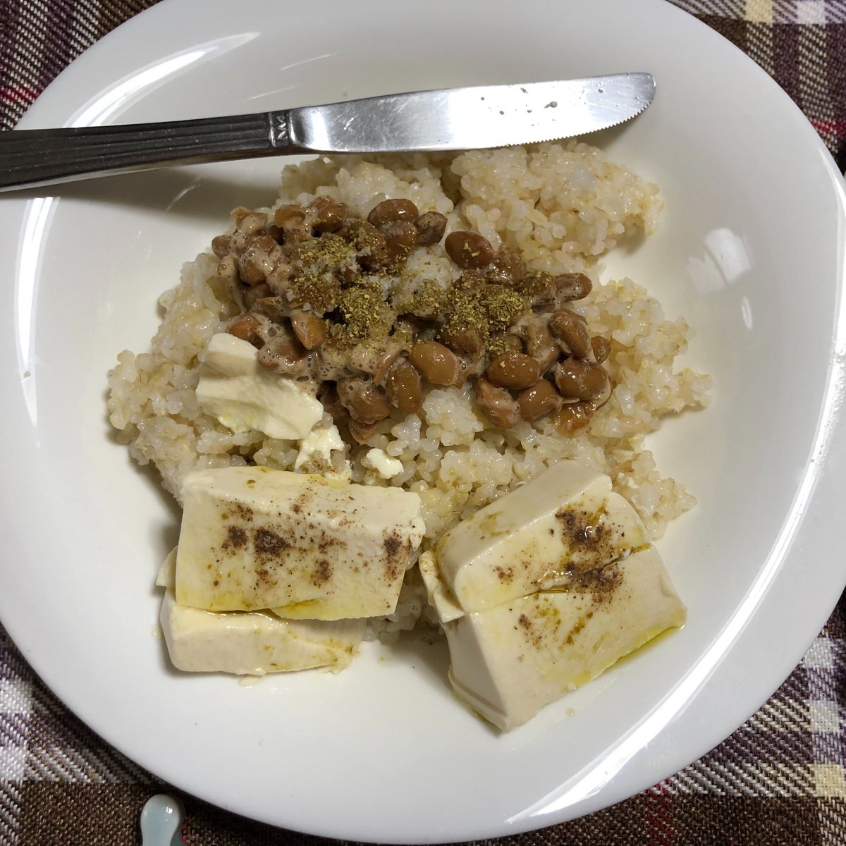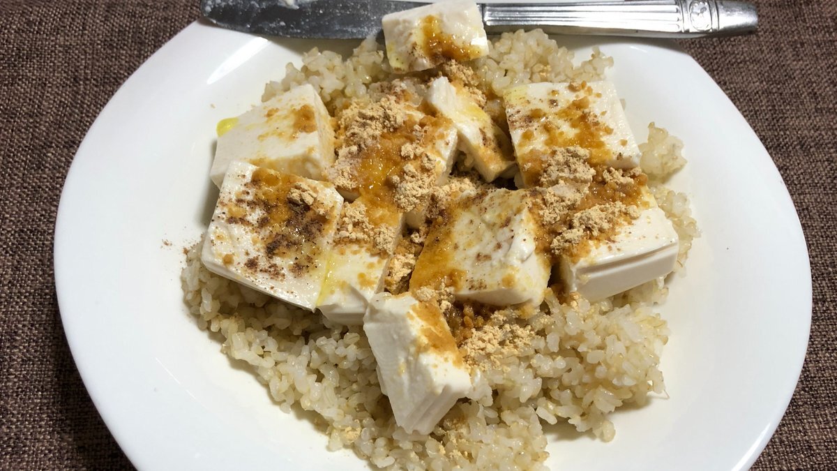 豆腐丼。 絹豆腐150g+オリーブオイル+レモスコ+藻塩。 茶漬け風。 カレー粉、藻塩、オリーブオイル。 毎日同じモノばかり食べている。 それはそれでラク。 #ミートフリーマンデー #MeatFreeMonday #ヴィーガン #vegan #tofu #konbu #プラントベース #動物性不使用 #広島平和菜食主義 #玄米菜食 pic.x.com/cmjazQ9aCD