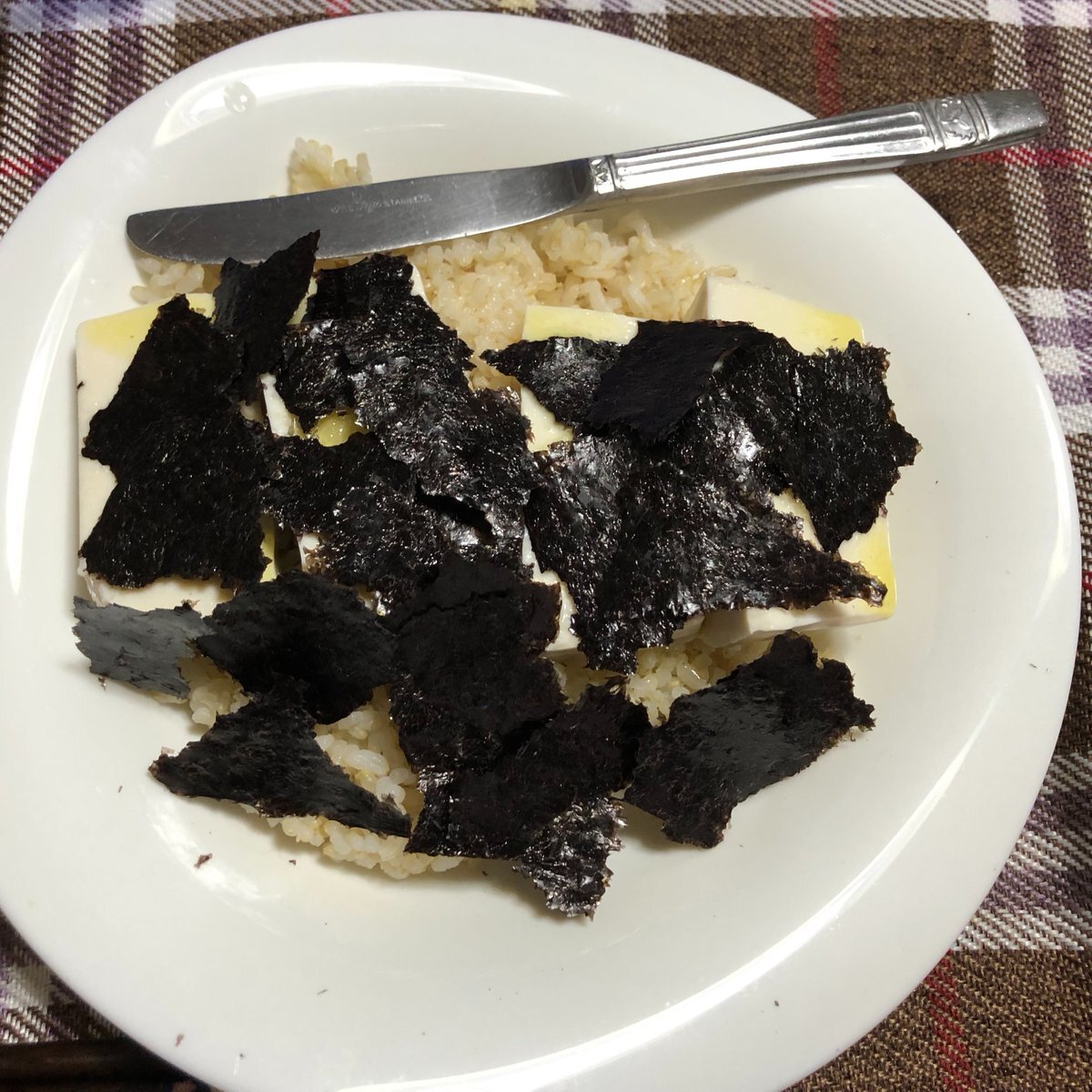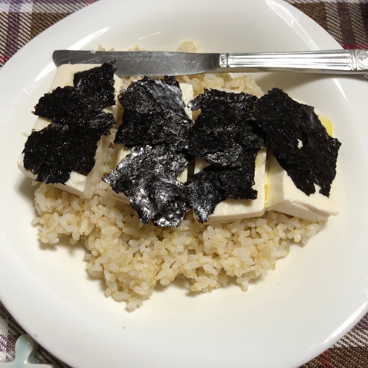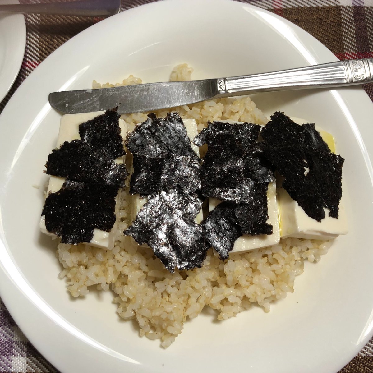 豆腐丼。海苔かけ。丸一枚使用。 絹豆腐150g+藻塩+オリーブオイル。 気に入ると同じモノばかり食べてしまう。 豆腐を食べ切った。 海苔二枚目。玄米を巻いて食べる。 毎日海苔を二枚食べている。オイシイ。 #ミートフリーマンデー #MeatFreeMonday #ヴィーガン #vegan #tofu #nori #玄米菜食 pic.x.com/DSY5edxAHW