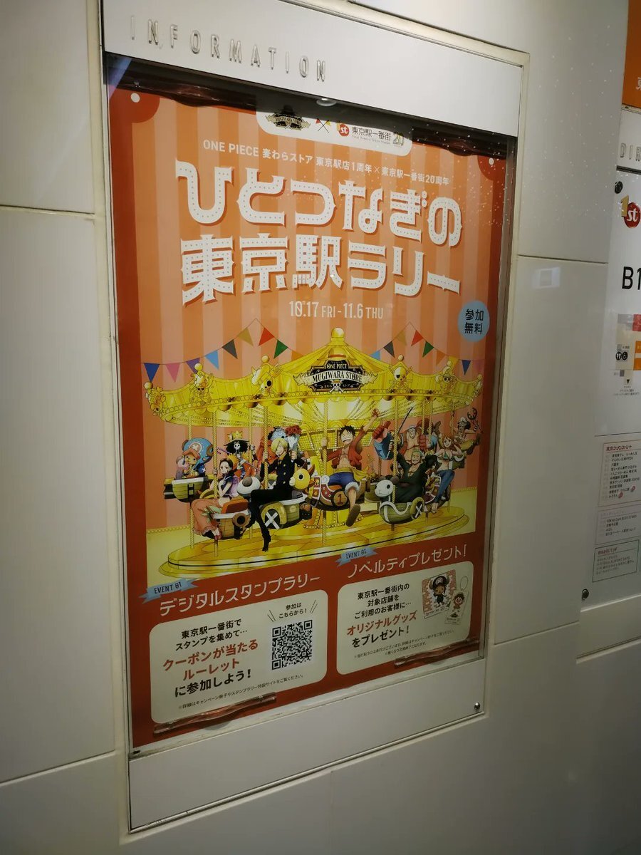 10月18日。東京駅地下街の東京キャラクターストリート。風景〜その11。この日は、ワンピースのラッピングでジャックされてました。 #東京 #tokyo #出先画像 #東京駅 #tokyostation #東京キャラクターストリート #tokyocharacterstreet pic.x.com/OnUpFywr42