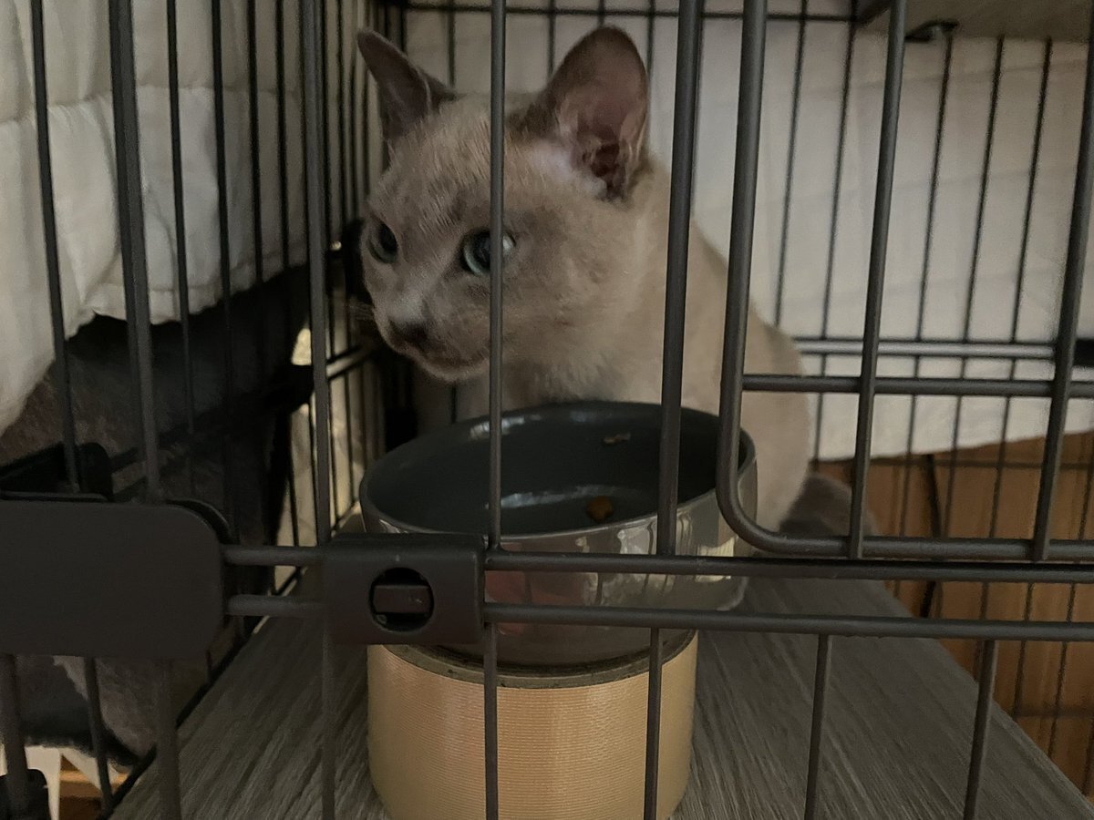 #運輸 の最近流行りの場所はケージの上。 「人間観察には最適な場所です」となったようなのでクッションを置いてみた。 #猫 #トンキニーズ #Tonkinese #unyu pic.x.com/AQZLRpSgEt