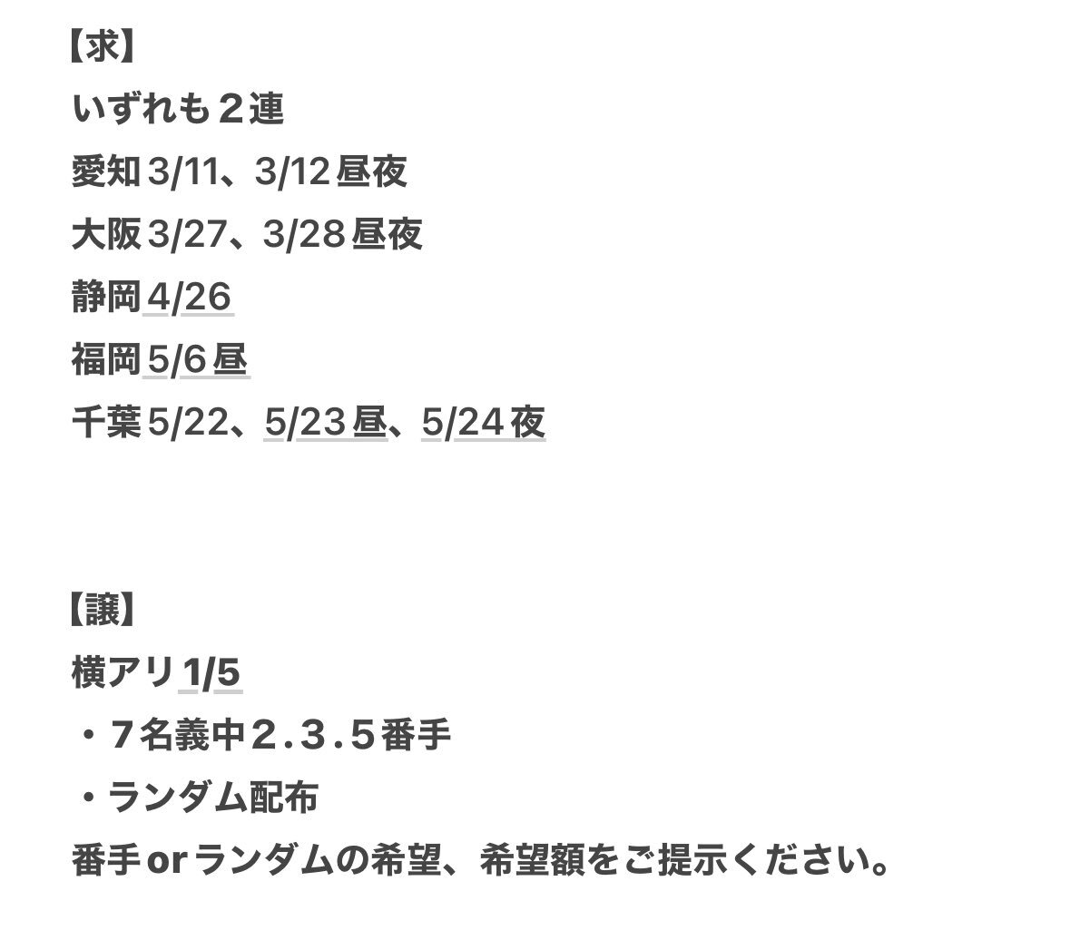 Travis Japan Concert Tour 2026 's travelers お譲り先を探しております 【譲】横アリ1/5 4名義中2〜4番手 【枚数】1-2枚 【金額】ご提示ください 【取引】要相談 下3桁提示可/有効期限内/すり替えなし 必要事項明記の上DMまでお願いいたします。 #トラジャ譲 #TravisJapan譲