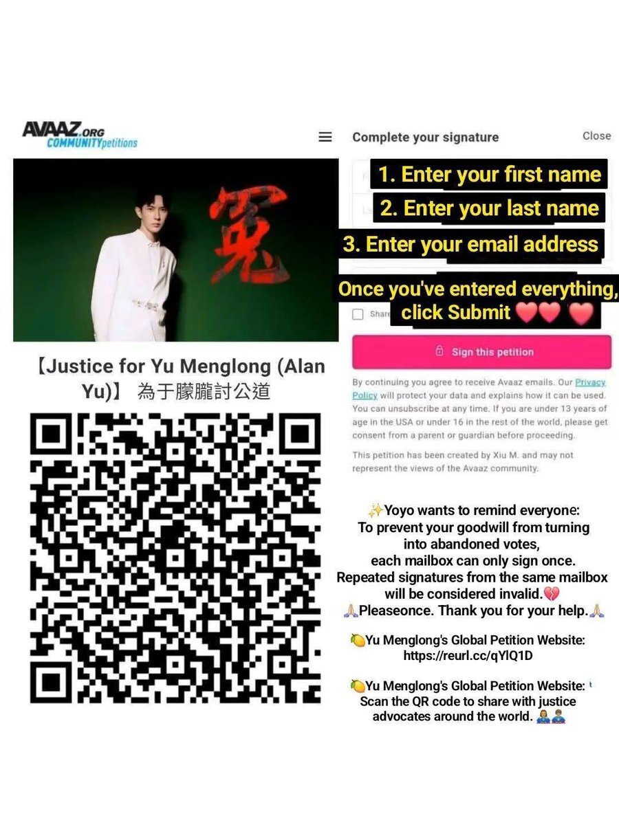 正義の皆さん、ぜひ署名をお願いします🙏 国際プラットフォームで、すでに43万人が署名済み! 手順に沿って簡単に署名できます。 署名&拡散、よろしくお願いします。 #真実 #正義 #俳優 #アイドル #有名人 #ニュース #芸能界 # #Truth #Justice #Actor #Idol #Celebrity #Dog #YuMenglong #Japan pic.x.com/0eaUnjxD0c
