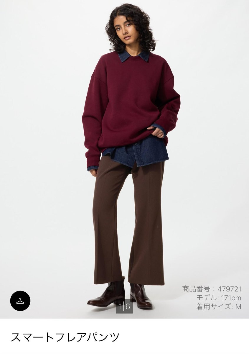 ユニクロのスマートフレアパンツおすすめ! 2年前くらいに出た夏用のフレアパンツと似てるけど、今期のは生地が厚めで下着のライン拾わない✨ 赤みがかったチョコレートブラウンがブルベさんに◎ 産後太りでウエスト81cm、Lサイズぴったり、長さもちょうど良い(座るとちょっとキツいw) #UNIQLO pic.x.com/4cbBVWLTlV