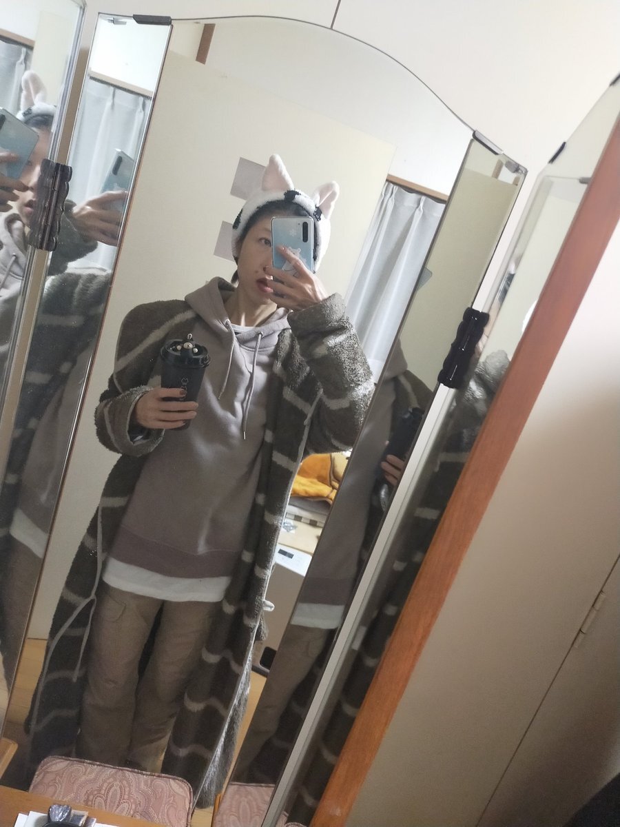 ちなみに帰宅後のだらりんコーデはこんな感じ。 #FELISSIMO 猫耳もふもふヘアターバン、#着る毛布 #foomo、#アベイル 裾フェイク重ね着風裏起毛くすみピンクパーカートレーナー、#UNIQLO #boys160 ベージュ中薄手綿カーゴ、#DAISO ブラウン系ボーダー靴下、#Tem キュート面白しろくまメッシュスリッパ pic.x.com/DmBSgC3HW2
