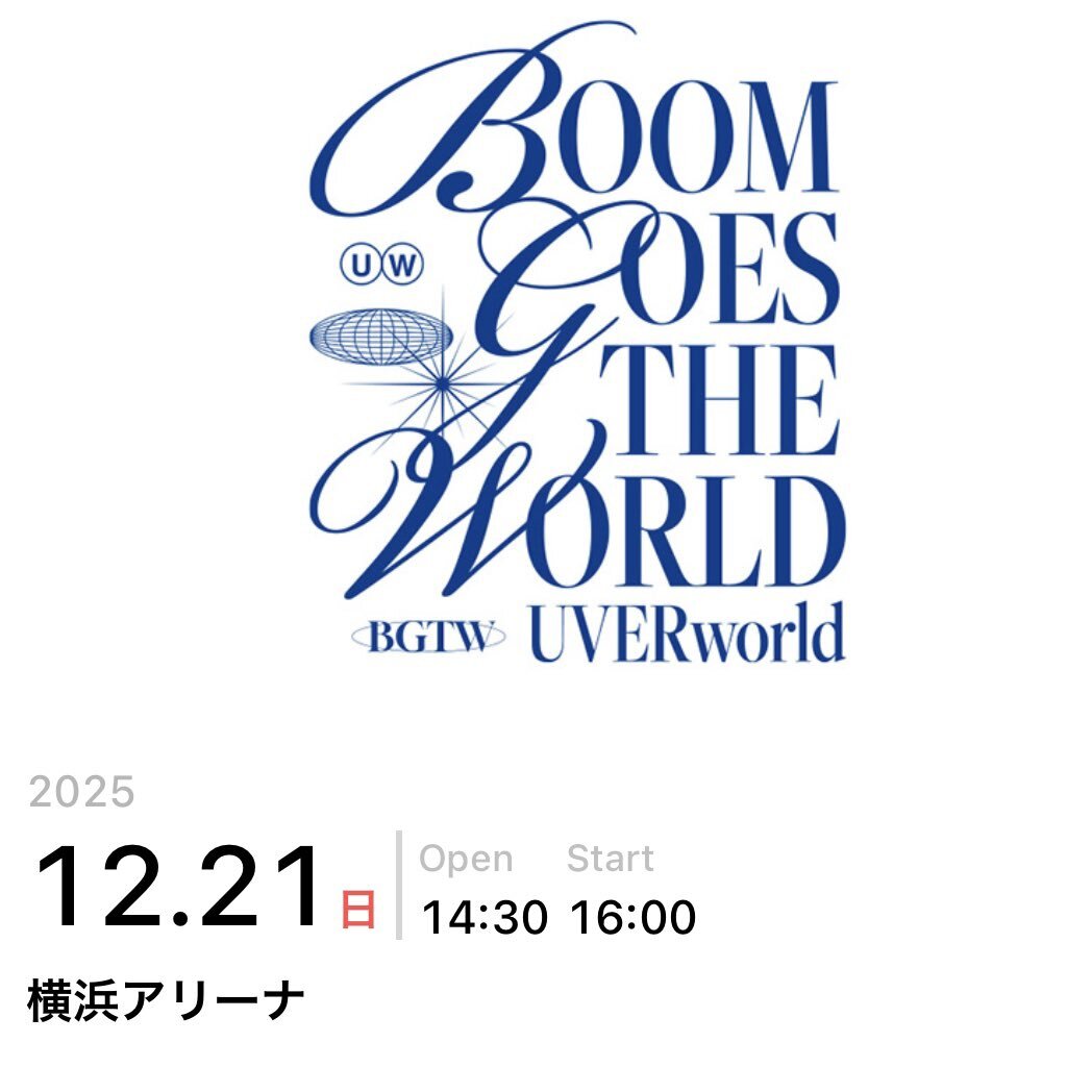 UVERworld "BOOM GOES THE WORLD" 【譲】12/20 横浜アリーナ 1枚 【求】定価 【譲】12/21 横浜アリーナ 女性限定 1枚 【求】定価 同行者様は30代女性の方でお願いいたします。 ご検討いただける方はDMにてご連絡ください。 #UVERworld #UVERworld_WINTERTOUR2025 pic.x.com/WtOu5ASJbk
