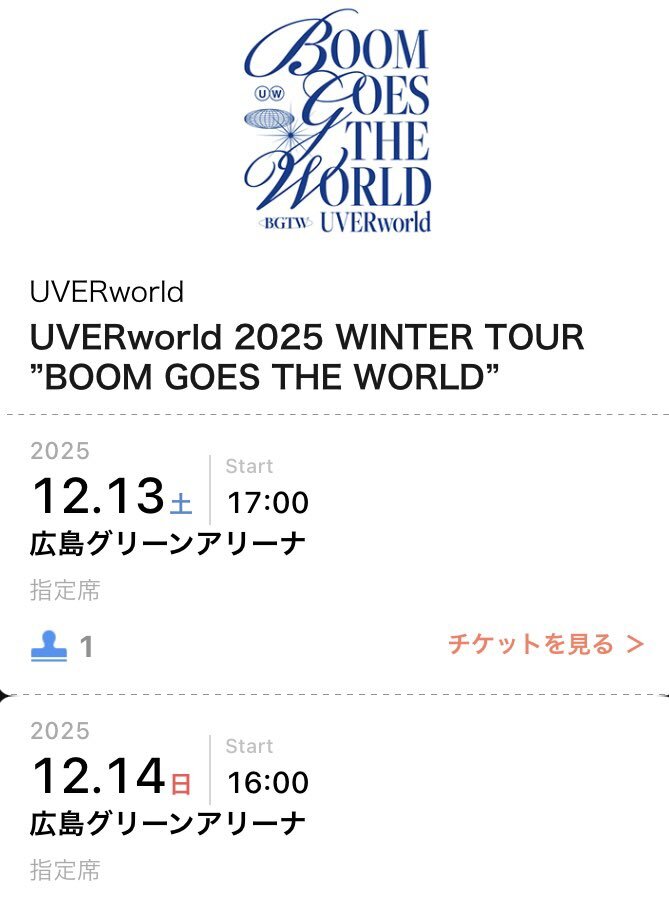 【急募】UVERworld広島チケット探してる、+譲ります! 譲→UVERworld広島12/13 2枚 金額は要相談。 UVERworld広島12/14 2枚 DM解放しておりますので、ご連絡お待ちしております。ggg😍🙇♀️gg #拡散希望 #拡散希望RPご協力お願い致します #UVERworld