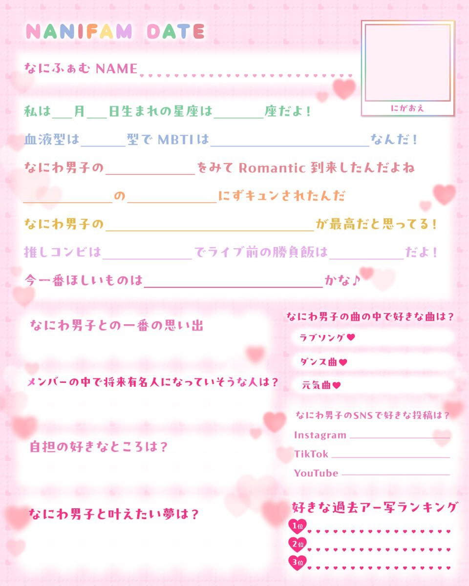 🤍👦🏻🏫なにふぁむプロフ📔✍🏻💖 なにわ学園の生徒の皆さん、新たな課題です🫡 『#なにわ学園課題提出』で提出お待ちしてます👀✨ 提出期限:いつまでも🙆🏻♂️🙆🏻♀️ #なにわ学園課題提出 #なにふぁむプロフ #NeverRomantic