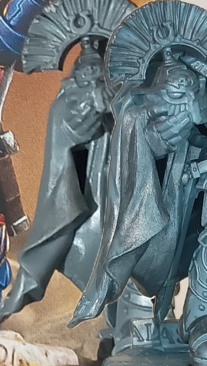 ウェザリング完了・・・ではなく、右肩をリカバリーできないほど失敗したので、今度はこちらをドボンしてやり直しています。 接着してなかったのがまだ救いです。 ピュリティシールやり直しです😩 #warhammer #ウォーハンマー #40k pic.x.com/TyCPjzM5YS