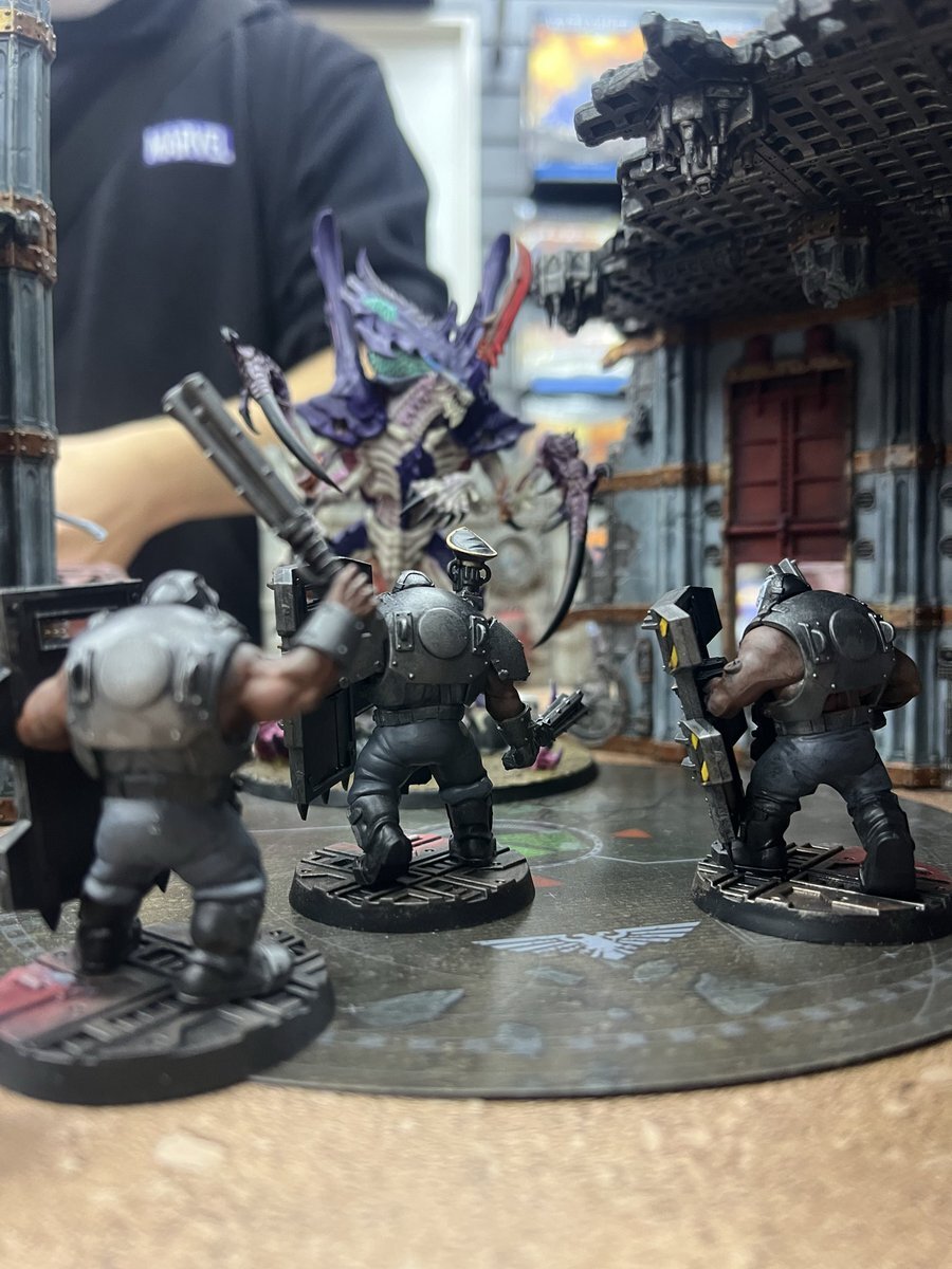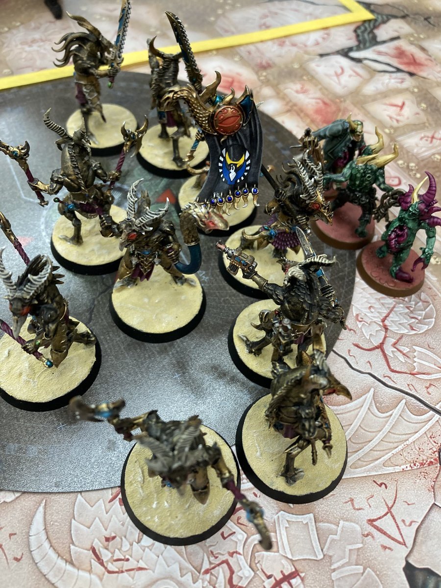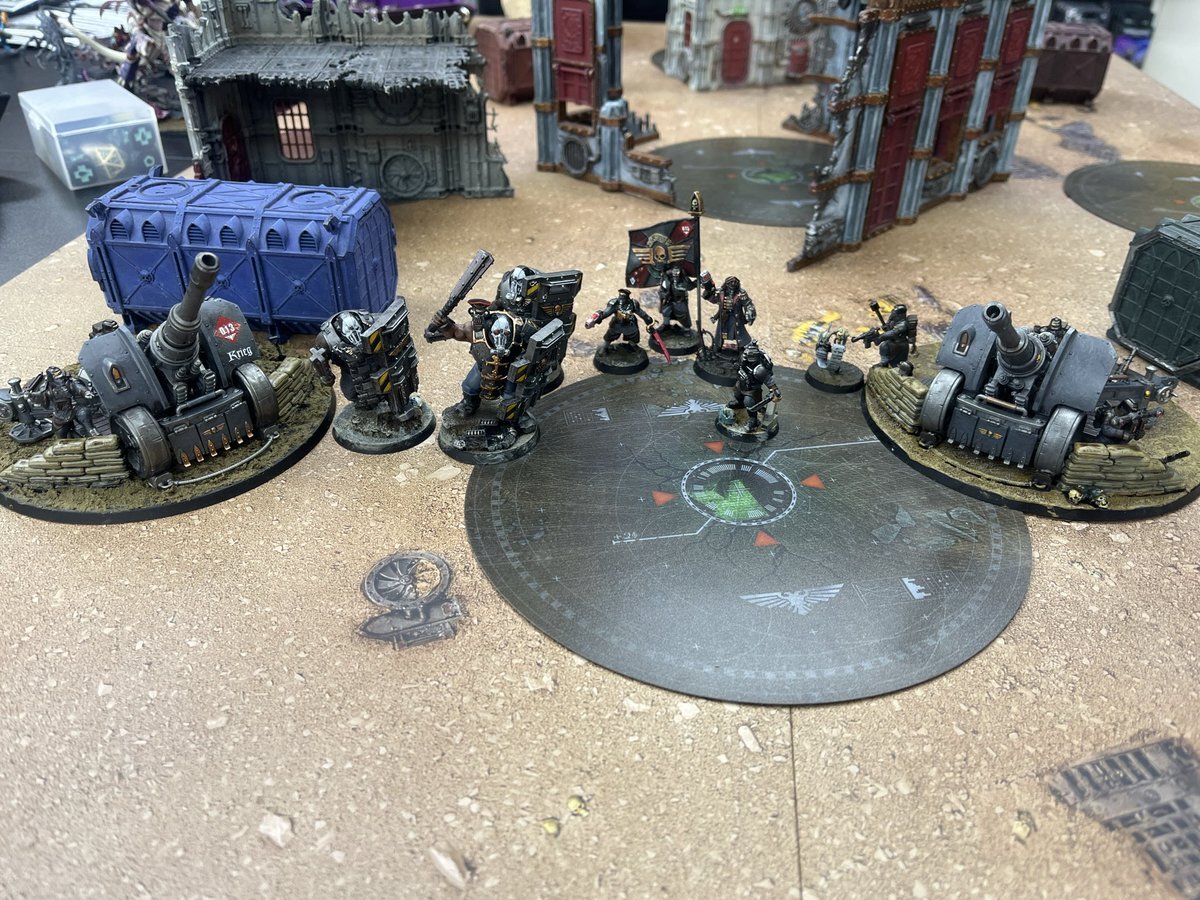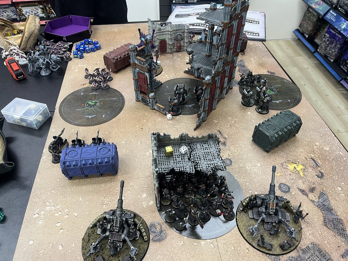 #ウォーハンマー #warhammer 久々の40kを3人打ち。 サウザンドサンの初戦。ケイオスナイトの先制射撃でサウザンドサン固有のユニットは半分以上消え、見知ったいつものビークルで戦った。難を逃れたツァーンゴールが確保&敵陣突撃で一番活躍していた。 大型ビークル同士が激突し見どころもあった。 pic.x.com/3g5q8gwY8A
