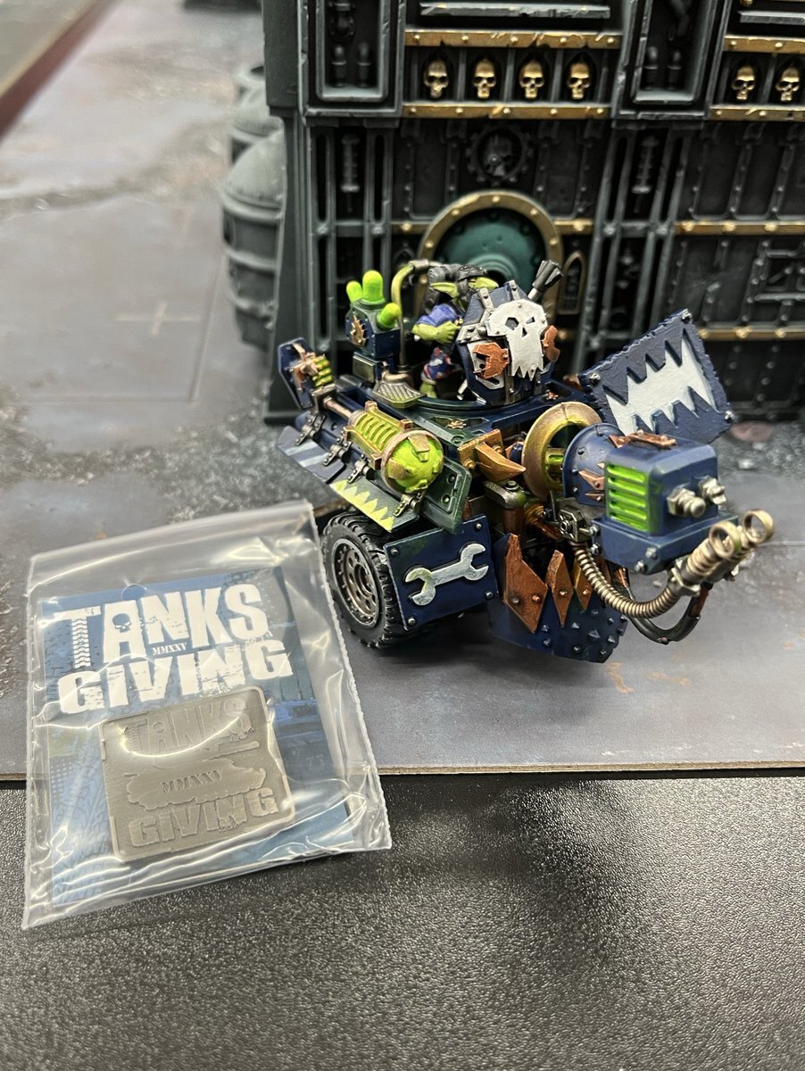 みんなから標的にされるともっぱらの噂のメクガンも提出🤪 とりあえず1回は撃てるから! 上振れすればMax36ダメだぞ! がんばれグレッチェン! #warhammer #オルク pic.x.com/h8vrMJB3ZL