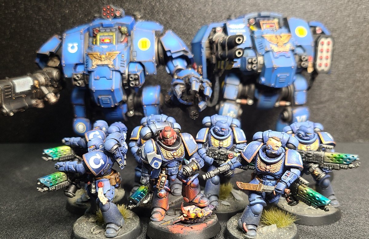 ペイントの塗り分けがシビアで おっさんの眼にはコレが限界… ケイオスマリーン 特にサウザントサンプレイヤーには脱帽です コレを何体も塗るのかぁ〜 余談ではありますが TS30kカラーなのにプライマリスマリーン? 説得力がまるでありませんな…😅 #WARHAMMER