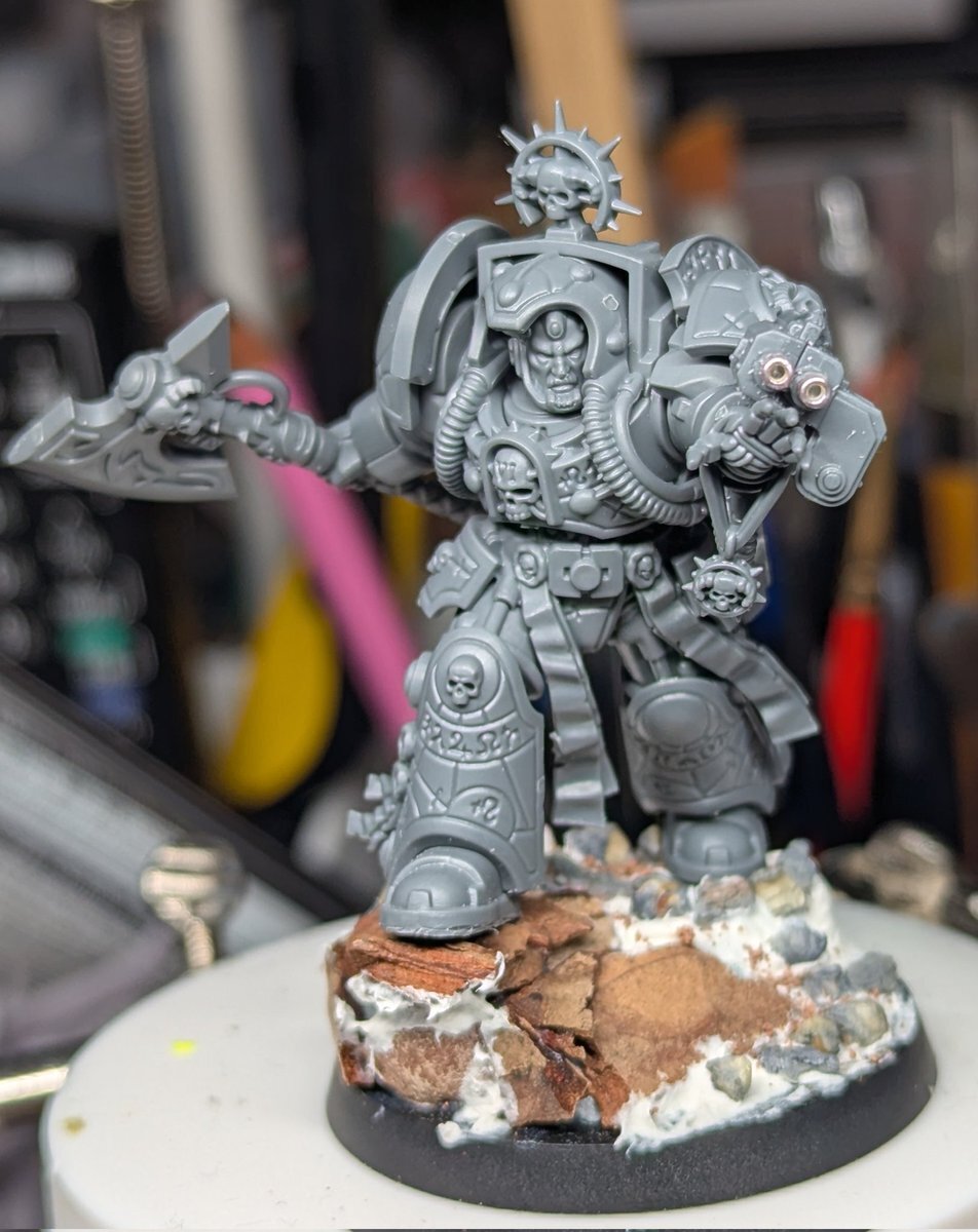 ライブラリアンのベースも出来たので、サフ吹きました。 ベースに高さが出ると、ポーズも決まってきますね〜☺️ #アシェット #warhammer #ウォーハンマー pic.x.com/enk80m9YfL
