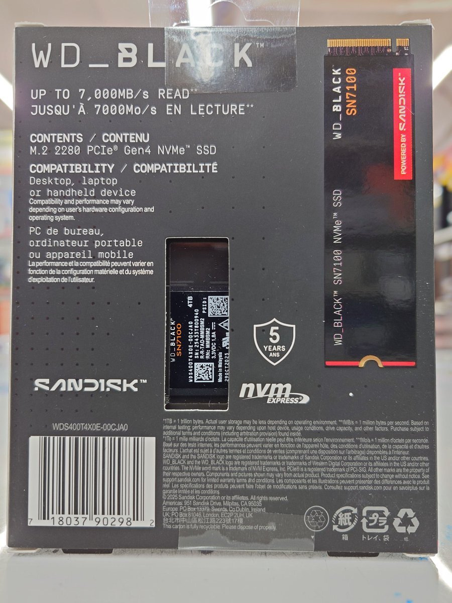 🎉おすすめ商品🎉 @WesternDigiJPN WD_BLACK SN7100 4TB 税込39,980円(11/17現在) ✨️NVMe #SSD ✨️ まだこの金額で買える! 店頭在庫数点ご用意しております😊 パフォーマンス◎なGen4規格SSDです✨ #パソコン工房 #町田 #WesternDigital #PCパーツ