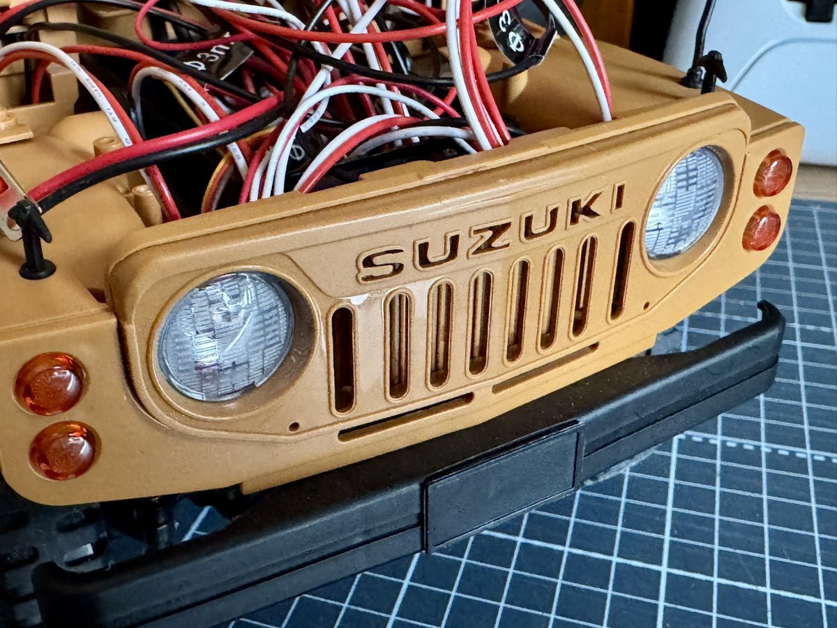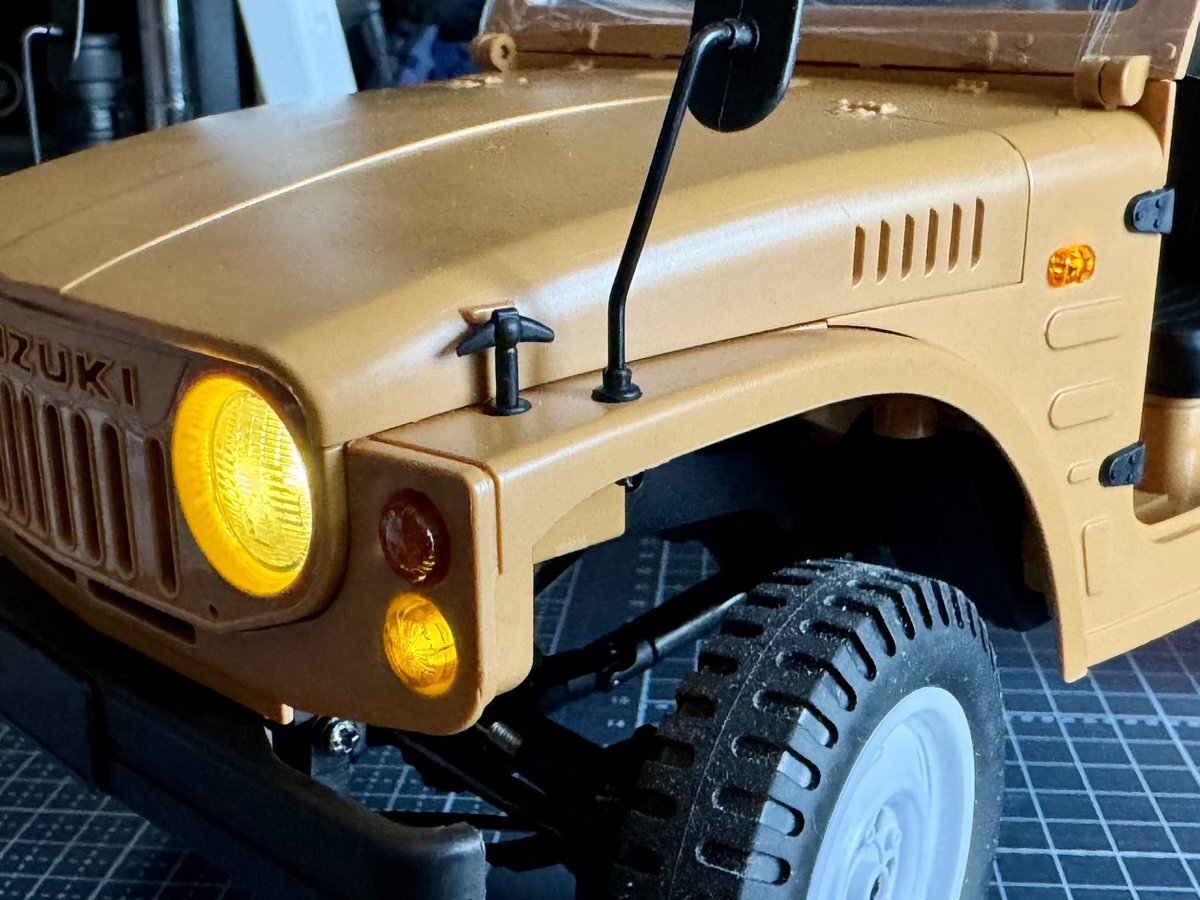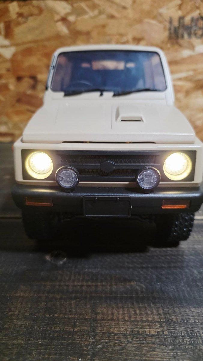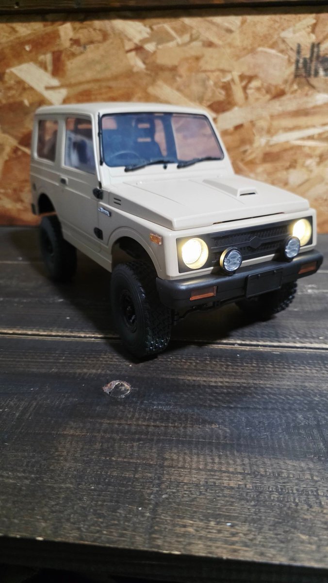 ゆくゆくは電飾を施したいと思ってますが実車をよく知らないので、片側に2つづつ付いてるウインカーらしきランプの役割がよく分かってません。上段が車幅灯で下段がウインカーだと想像しますが実際はどうなんでしょう🤔 #WPL #C84 #ジムニー #SJ10 pic.x.com/QhkucKCJPy