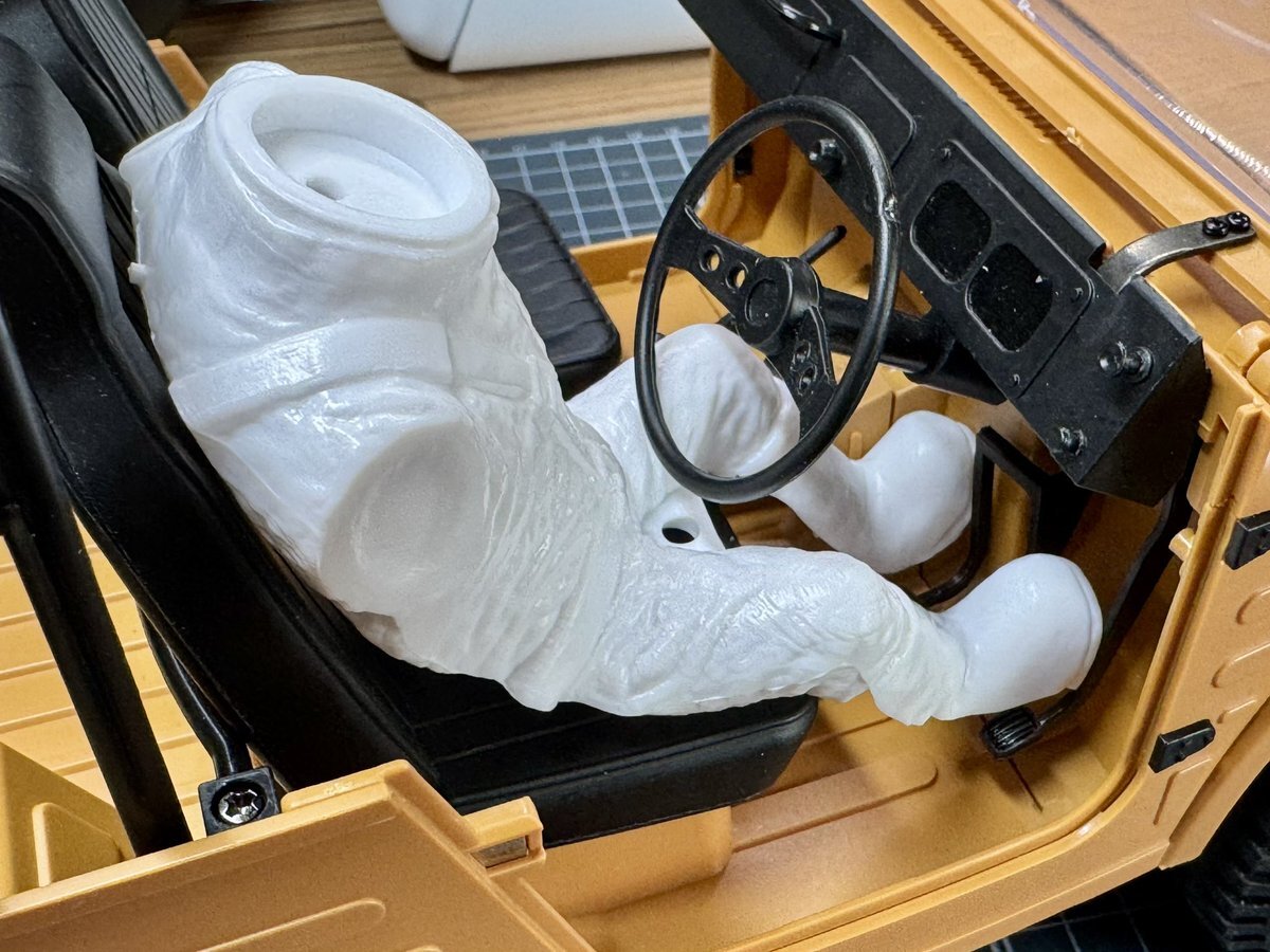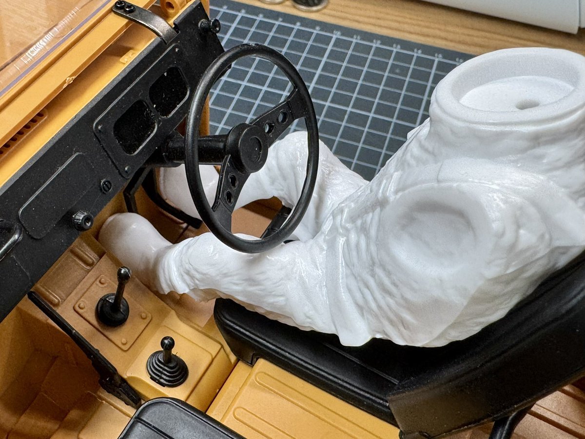 JA11やキャリィにはタミヤの『4×4オフロードカー ドライバー人形』を加工して乗せていますが、膝下が再現されていないのでドアを外したSJ10では色々厳しいのでどうしようかと。 脚を新造するかハーフドアにして誤魔化すか… 簡単な改造では済まないな😅 (1/2) #WPL #C84 #ジムニー #SJ10 pic.x.com/u6MRMsVQtr