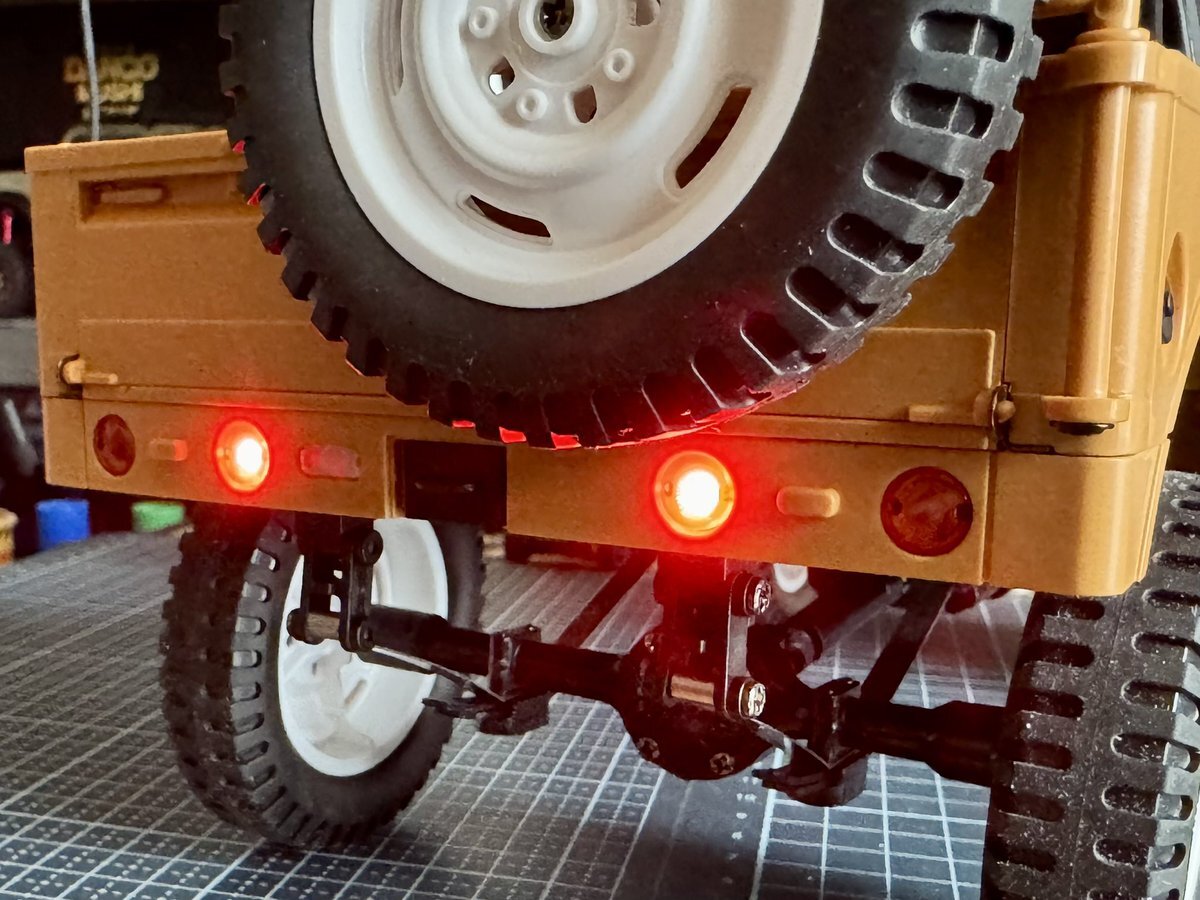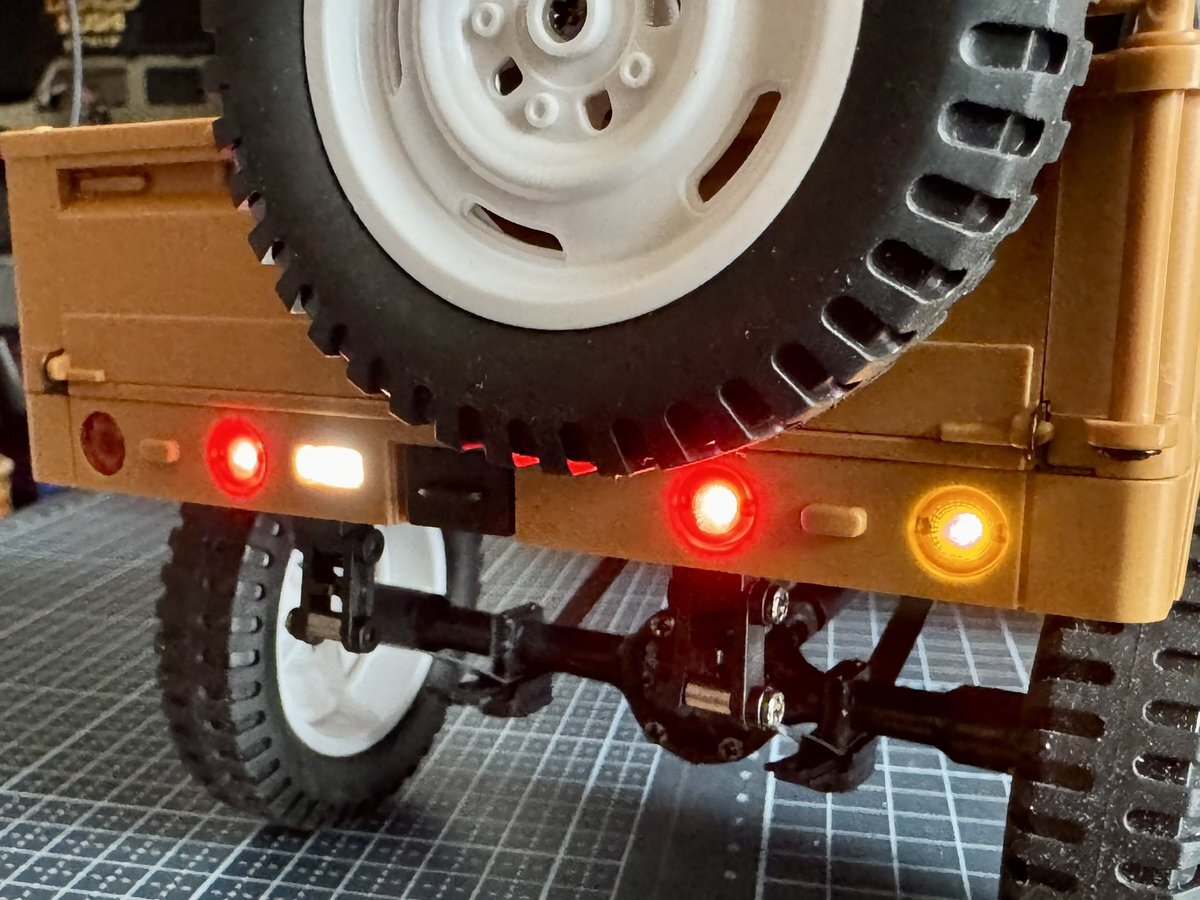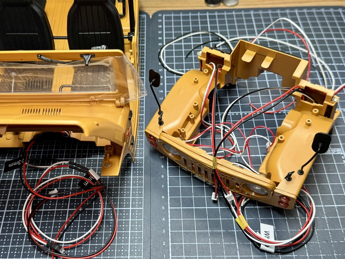 LED組込み作業中。先日「駐車灯」と判明した部分も一応入れましたが、どう点灯させるかは未定。サイドウインカーのスペースが確保されてるのがイイですね。 あとは分解に支障が出ない取回しを探らなくては… #WPL #ジムニー #SJ10 #RAYWOOD pic.x.com/zCWB2Za1XI