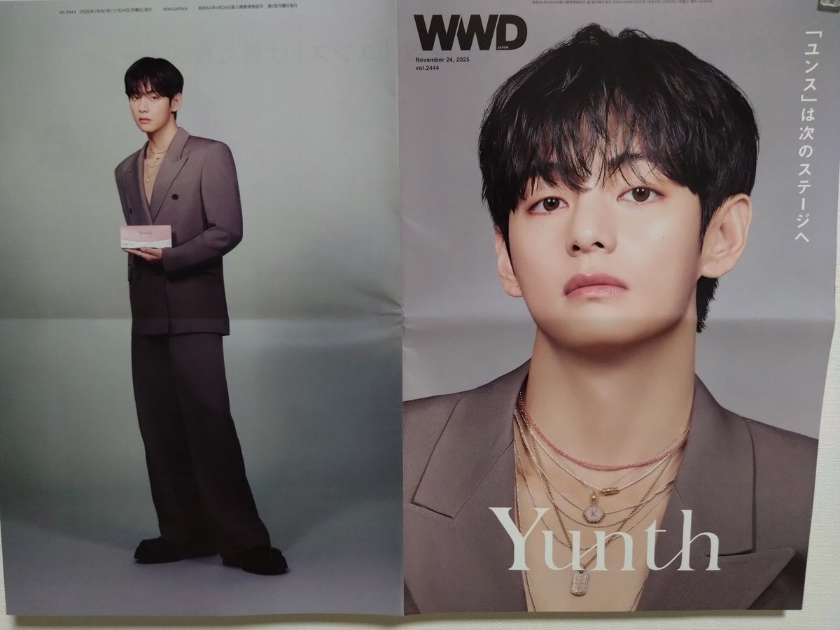 WWD新しいYUNTHのポスター付き本日入荷してました🎵😍🎵 渋谷大盛堂書店にあります🩷 ひとり一部のみ購入できます🎶 まだたくさんありました🩷 #WWD #YUNTH #BTSV pic.x.com/zDZ6QhWtSa