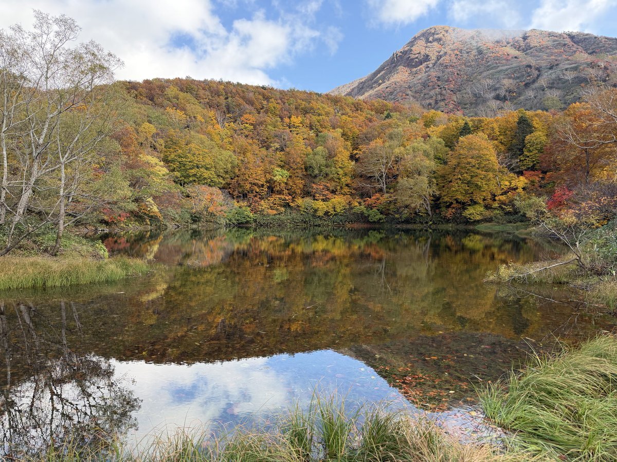 蔵王の紅葉が見頃だと聞いて片貝沼に行ってきました。上るときは雲がかかっていたのがウガンダの晴れパワーで青空に。#iPhone17pro で撮影(無加工) #蔵王温泉スキー場 #ZAO #yamagata pic.x.com/TTCDYlZCZo