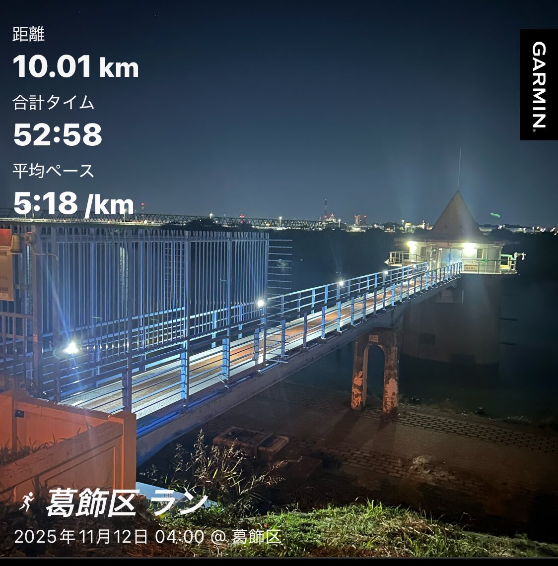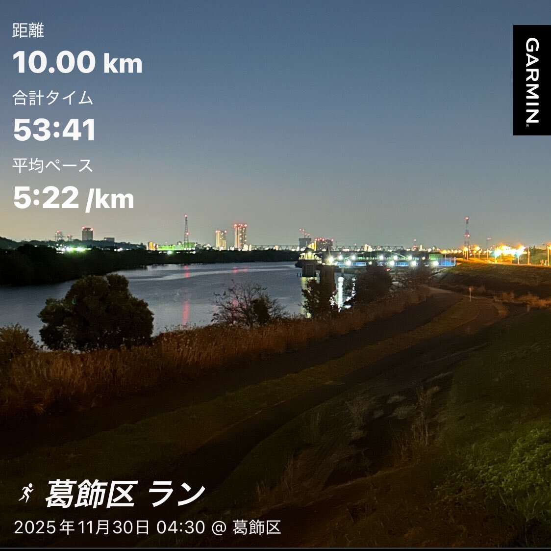 おはようございます🙋‍♂️ 2025/11/30 ☀️ 11月ラストラン🏃‍♂️‍➡️ 葛飾区 ただいまの気温6.7℃(6:00現在) 朝活🤸‍♀️🏃‍♂️‍➡️🚶‍♂️‍➡️ 休日の朝ラン🏃‍♂️10km💦 月間125kmで終了あらら😖 ウォーキング中 休日だけど…行政のお手伝い🤨 #朝ラン #ysrun pic.x.com/6vluEBHJ6b